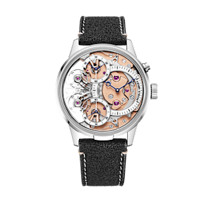 Armin Strom wristwatch, Mirrored Force Resonance Zeitgeist Steel, 43 mm, steel,. Alcantara, with pin buckle, white dial manual winding, Cal. ARF21, sapphire-crystal, 3 atm, Ref.:ST25-RF.ZG