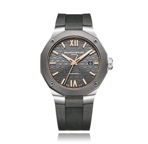 BAUME & MERCIER Armbanduhr, Riviera 42 mm, Stahl, Kautschukband, mit Falt-Schliesse Zifferblatt: anthrazit röm./Index, Automat, Kaliber Sellita SW200, Saphir-Glas, 10 Atm, ADLC Ref.:M0A10660