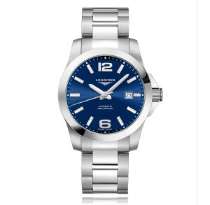 LONGINES Armbanduhr, Conquest 41mm, Stahl, Stahl-Band, Zifferblatt: blau arab./Index, Automat Kaliber 619 / 888, Saphir-Glas 30 Atm/verschraubte Krone, Ref.:L3.777.4.99.6