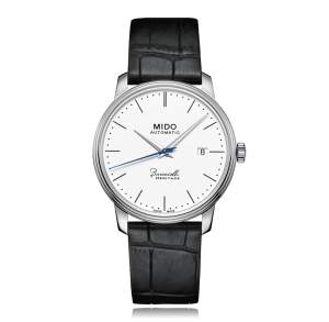 MIDO Armbanduhr, Baroncelli 39mm, 3 Atm Automat Stahl, Leder-Band, Saphirglas zweiseitig entspiegelt-Glas, Zifferblatt: weiss Index, Ref.:M027.407.16.010.00