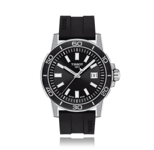 TISSOT Armbanduhr, SUPERSPORT GENT, 44 mm, Stahl, Kautschukband, mit Dorn-Schliesse Zifferblatt: schwarz Index, Quarz, Zentrum-Sekunde, Saphir-Glas, 10 Atm, Ref.:T125.610.17.051.00