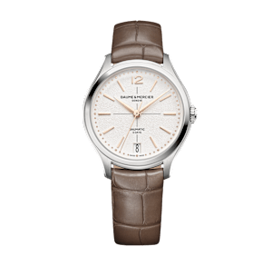 BAUME & MERCIER wristwatch, Clifton 34 mm, steel,. alligator leather strap, with pin buckle, beige dial with arab./Index, automatic, Cal. Baumatic BM13-1975A, sapphire-crystal, 5 atm,. Ref.:M0A10831