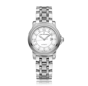 CARL F. BUCHERER Patravi AutoDate 31.6 mm wristwatch, steel automatic with date round 10 atm/screw-down crown dial: white index, steel bracelet, Ref.:00.10637.08.23.21
