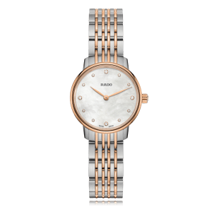 Wristwatch RADO Coupole Classic 27mm, steel/PVD, steel bracelet, mother of pearl dial with 12 diamonds, quartz Cal. ETA 280.002, sapphire-crystal, 5 atm, Ref.:R22897923