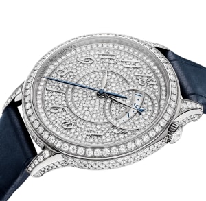 Wristwatch VACHERON & CONSTANTIN Egerie 35 mm, 18K white gold, Satinband, with pin buckle, pavé dial with arabic, automatic Cal. 1088, sapphire-crystal, 3 atm, 878 diamonds, total: 3,94 ct., with an additional alligator strap and buckle, Ref.:X46G3099