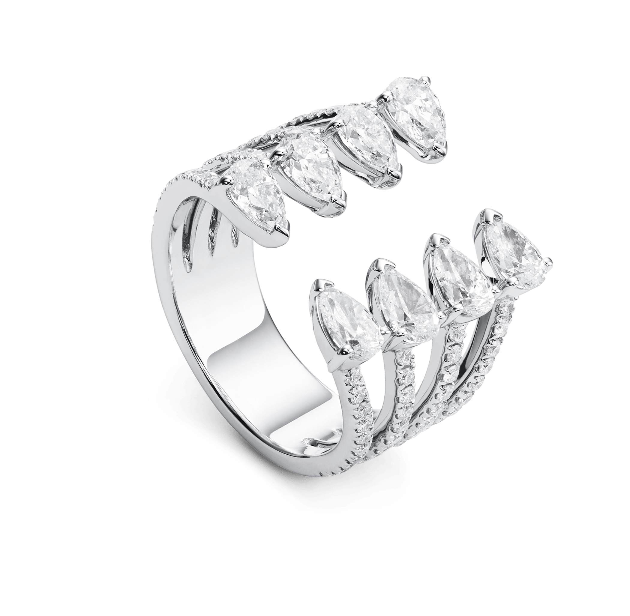 Bague Soirée or gris 18 ct. grandeur 53, 8 diamants taille poire total 1.96 ct., 76 diamants taille brillant total 0.64 ct.
