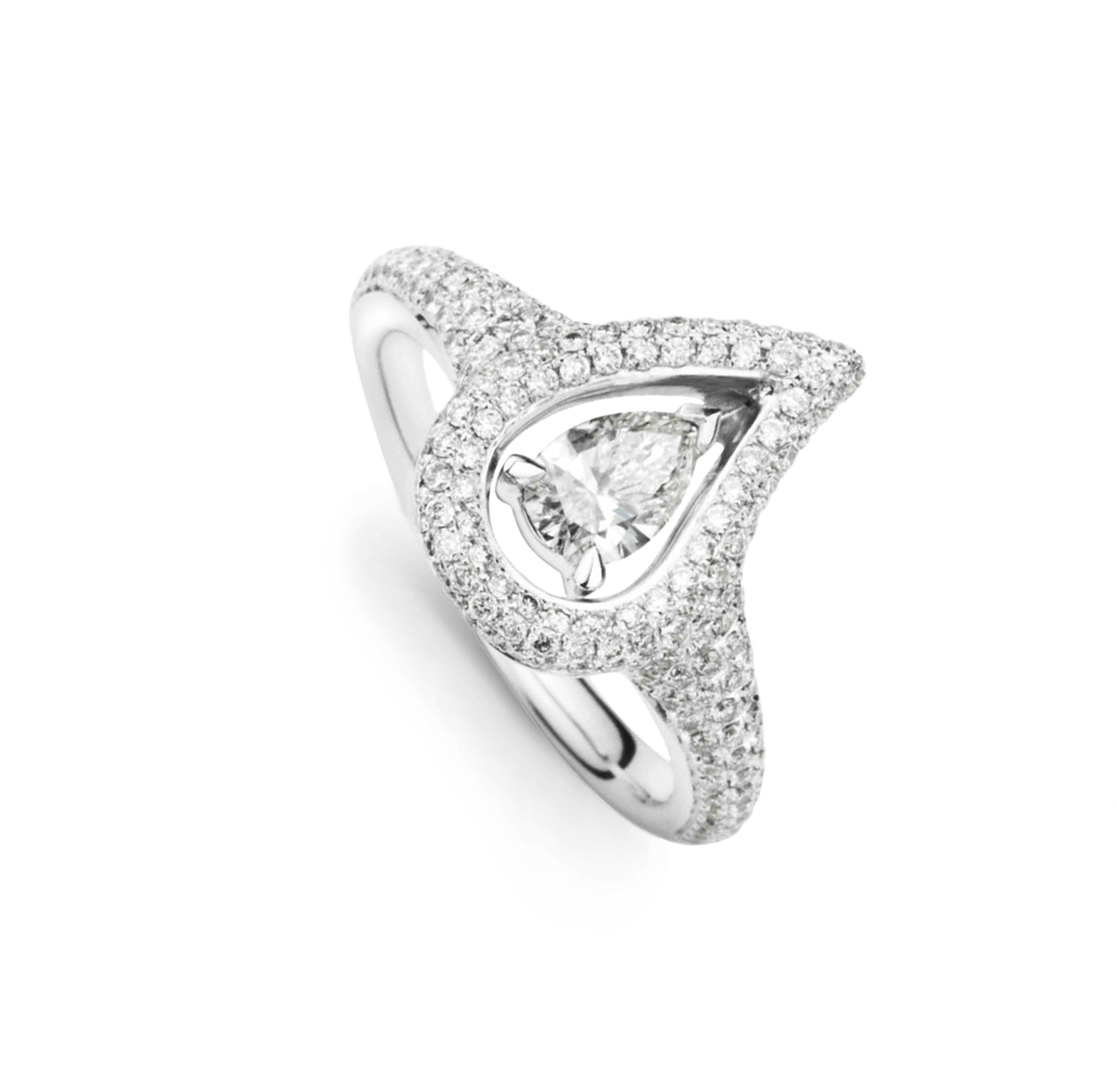 Bague Lacrima pavé or gris 18 ct. grandeur 57, 188 diamants taille brillant total 0.68 ct., diamant taille poire total 0.3 ct.