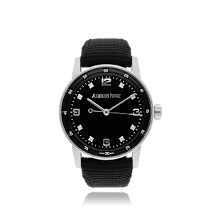 Audemars Piguet CODE 11.59 avec un boîtier de 41 mm en or blanc et un verre saphir, étanche; à l'intérieur se trouve le calibre automatique , cadran noir diamants, indication: sans date, bracelet tissu ; accessoire: garantie de vente (original), écrin (original).