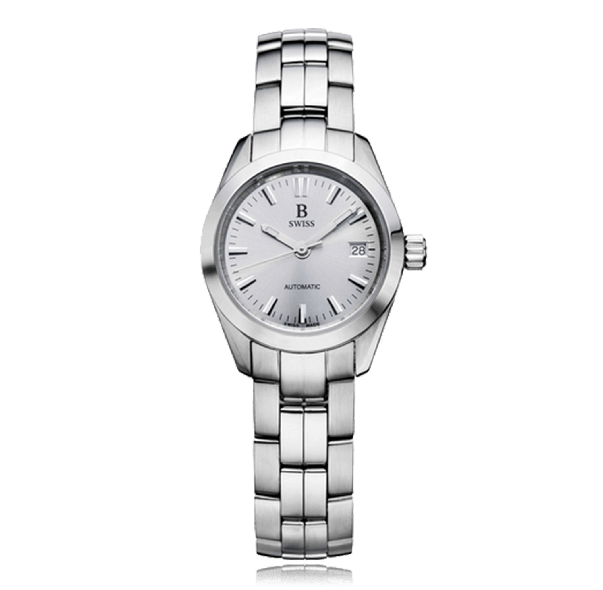 B SWISS CROSSOVER montre-bracelet pour dame, acier automatique avec date 10 atm/couronne vissée cadran: rhodié indices, bracelet acier verre saphir, Case No. 00.51007.08.63.21