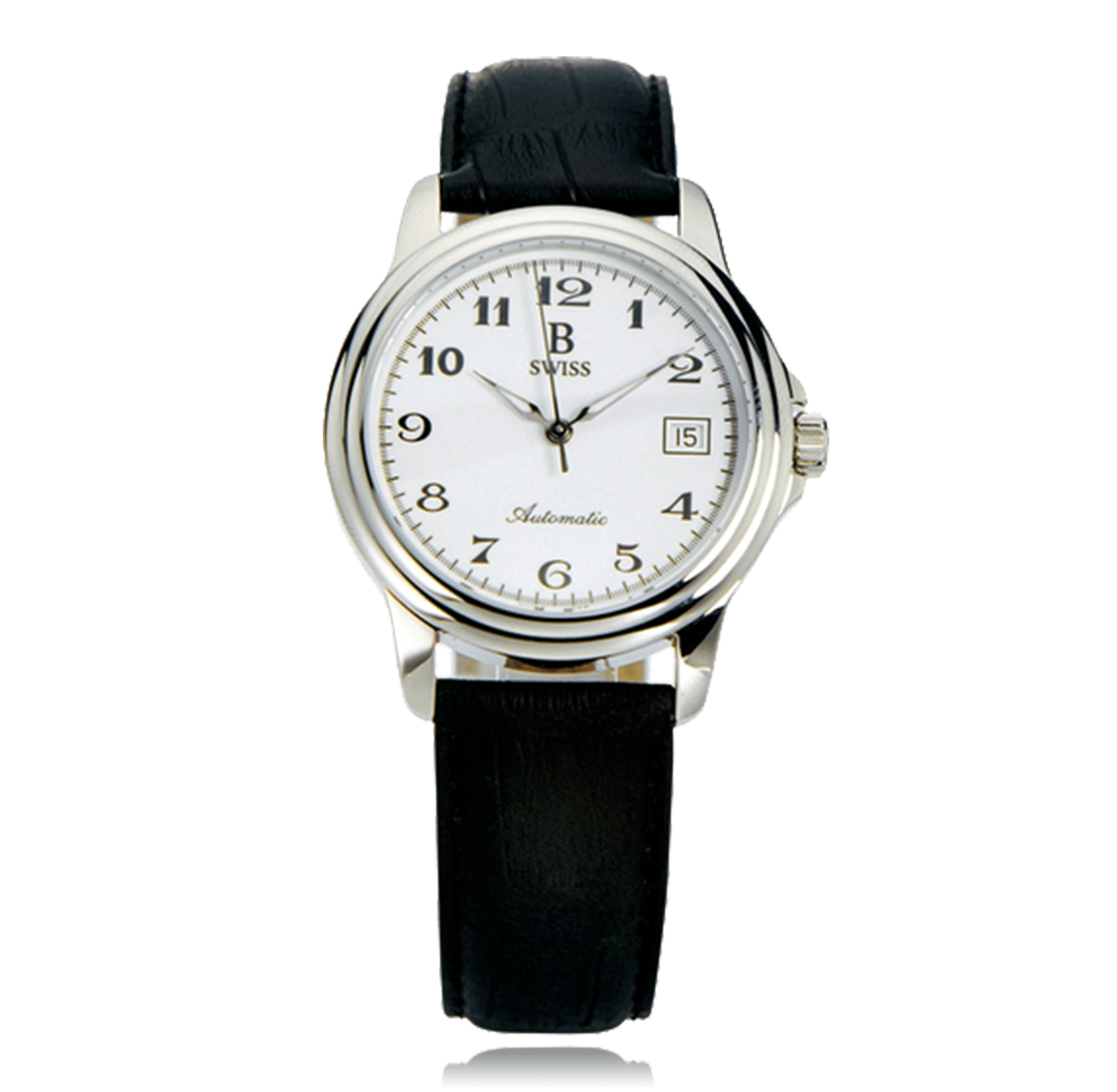 B SWISS PRESTIGE montre-bracelet pour homme, acier automatique avec date 3 atm cadran: blanc arabes, bracelet cuir verre saphir, Case No. 00.50501.08.22.01