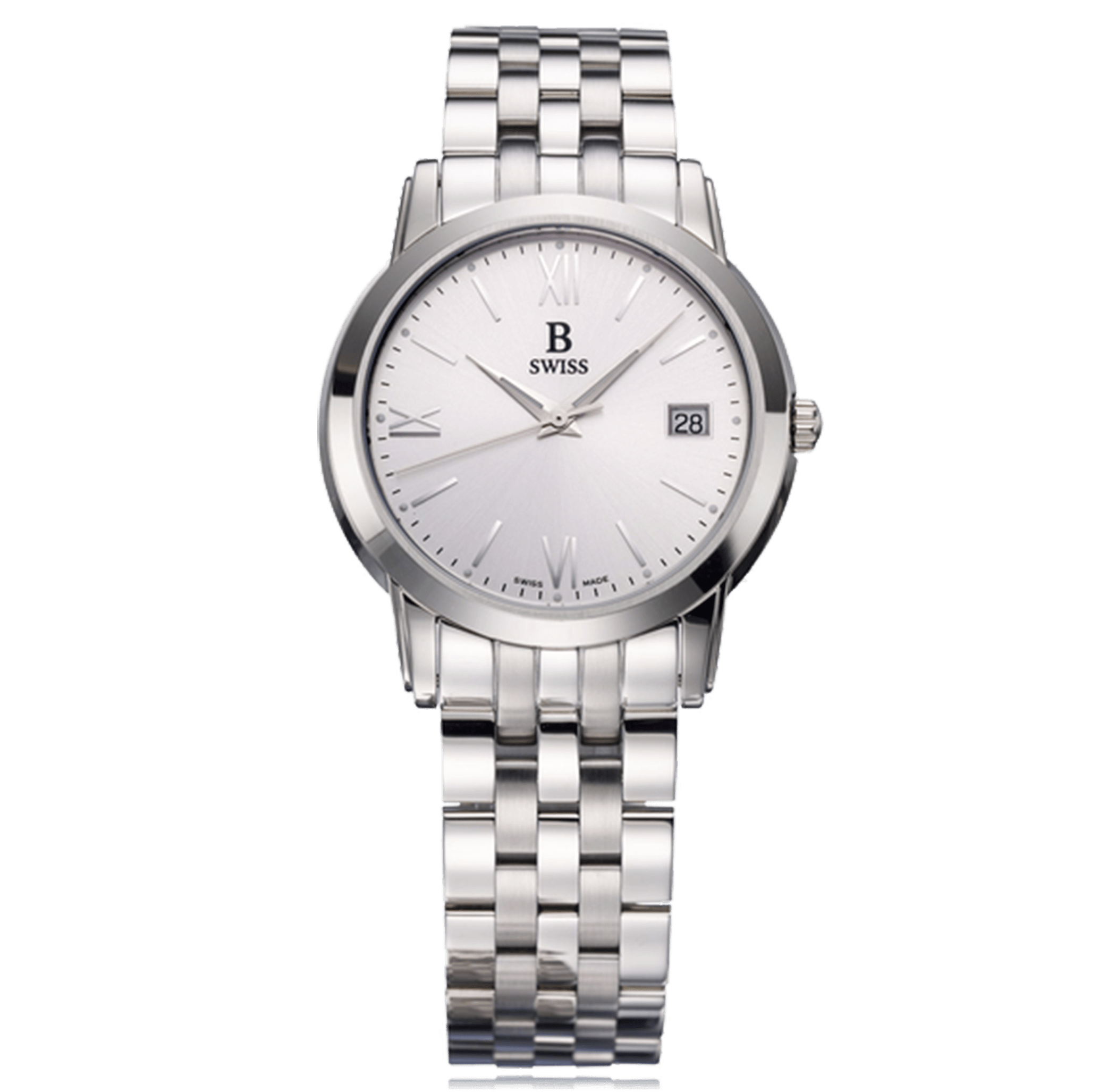 B SWISS TRADITION II montre-bracelet pour homme, acier quartz eol avec date 3 atm cadran: argenté romains / indices, bracelet acier verre saphir, Case No. 00.50203.08.15.21