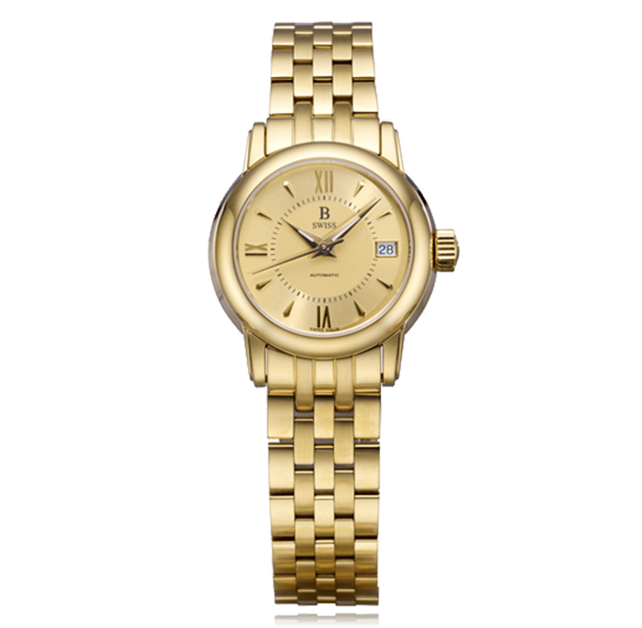 B SWISS TRADITION III montre-bracelet pour dame, PVD automatique avec date étanche cadran: champagne romains / indices, bracelet PVD verre saphir, Case No. 00.50206.10.45.21