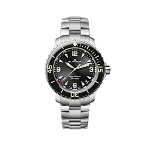 BLANCPAIN montre-bracelet, Fifty Fathoms 38.2 mm, acier,. bracelet acier, avec boucle déployante, cadran: noir avec index, automatique, Calibre 1315, seconde central, satiné, glace saphir, 30 atm, Ref.:5007-1130-71S
