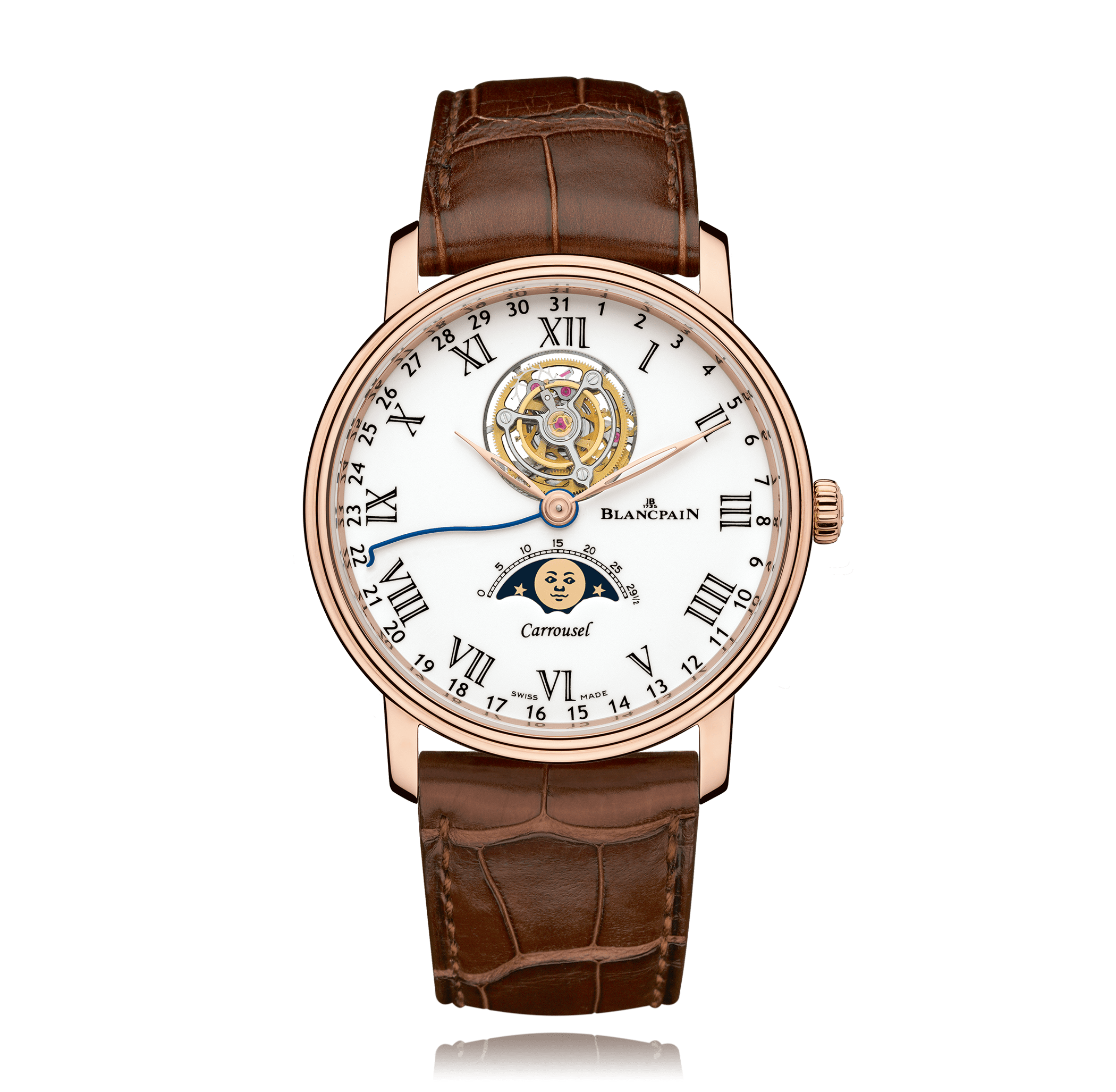 Montre-bracelet, BLANCPAIN Villeret 42 mm, or rose, 18K,. bracelet cuir de crocodile, avec boucle déployante, cadran: blanc/émail avec romains, automatique, Calibre 225L, petite seconde, glace saphir, étanche, Ref.:6622L-3631-55B