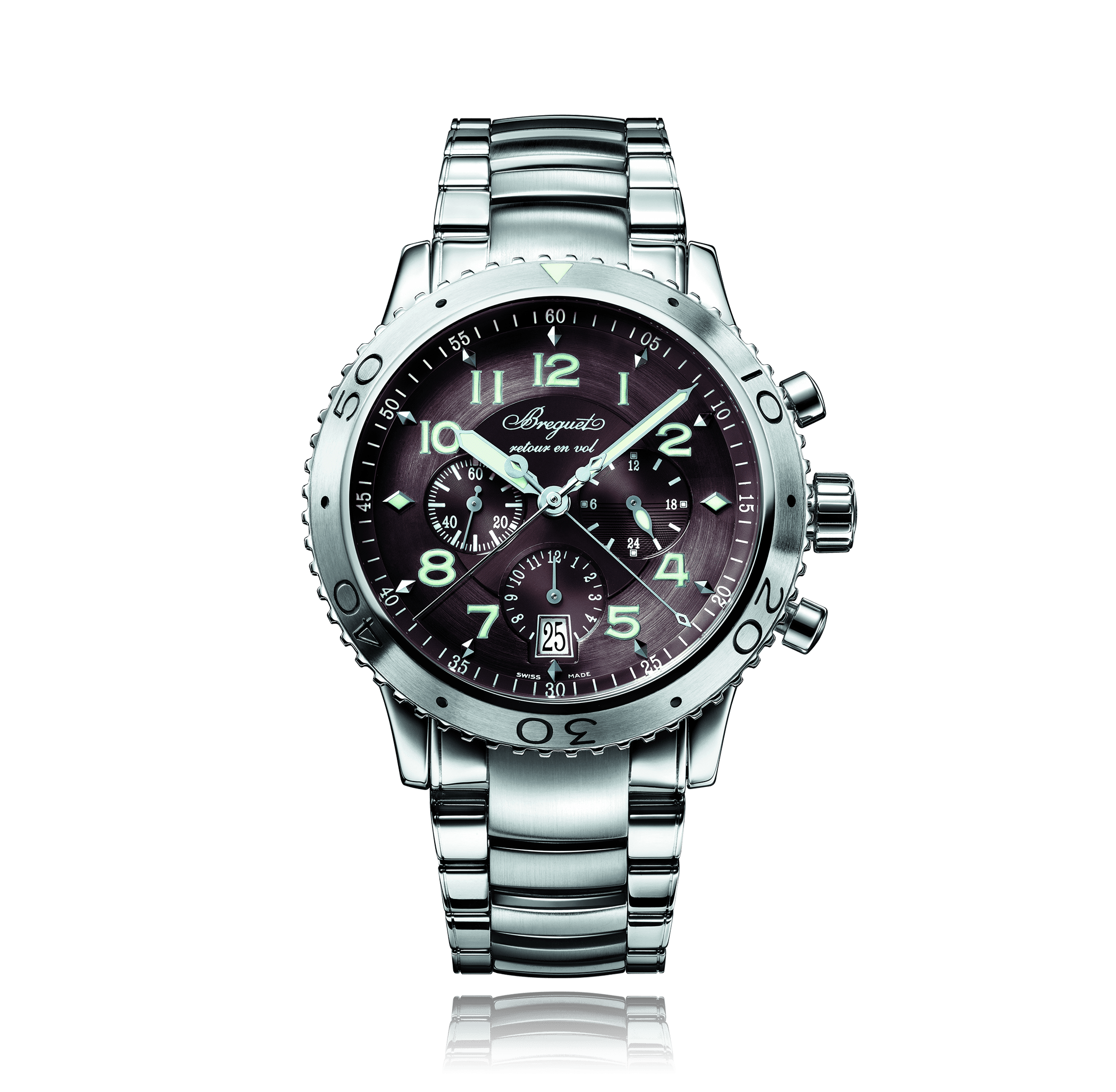 Chronographe, BREGUET Type XXl acier,. bracelet acier, cadran: anthracite avec arabes, automatique, seconde central, glace saphir, Ref.:3810ST/92/SZ9