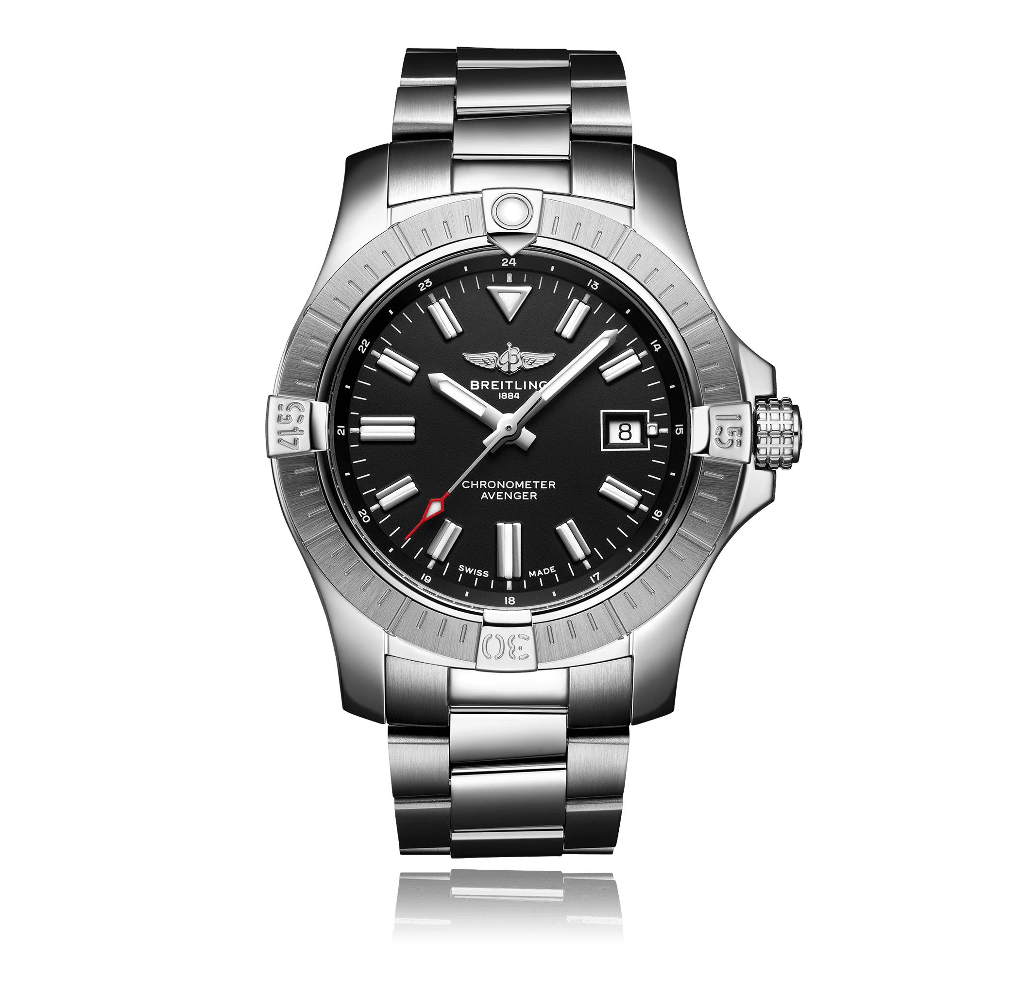 Wristwatch BREITLING Avenger Automatic, 43mm, steel, Professional steel bracelet, black dial with index, automatic Cal. Breitling 17, sapphire-crystal, 30 atm, Ref.:A17318101B1A1