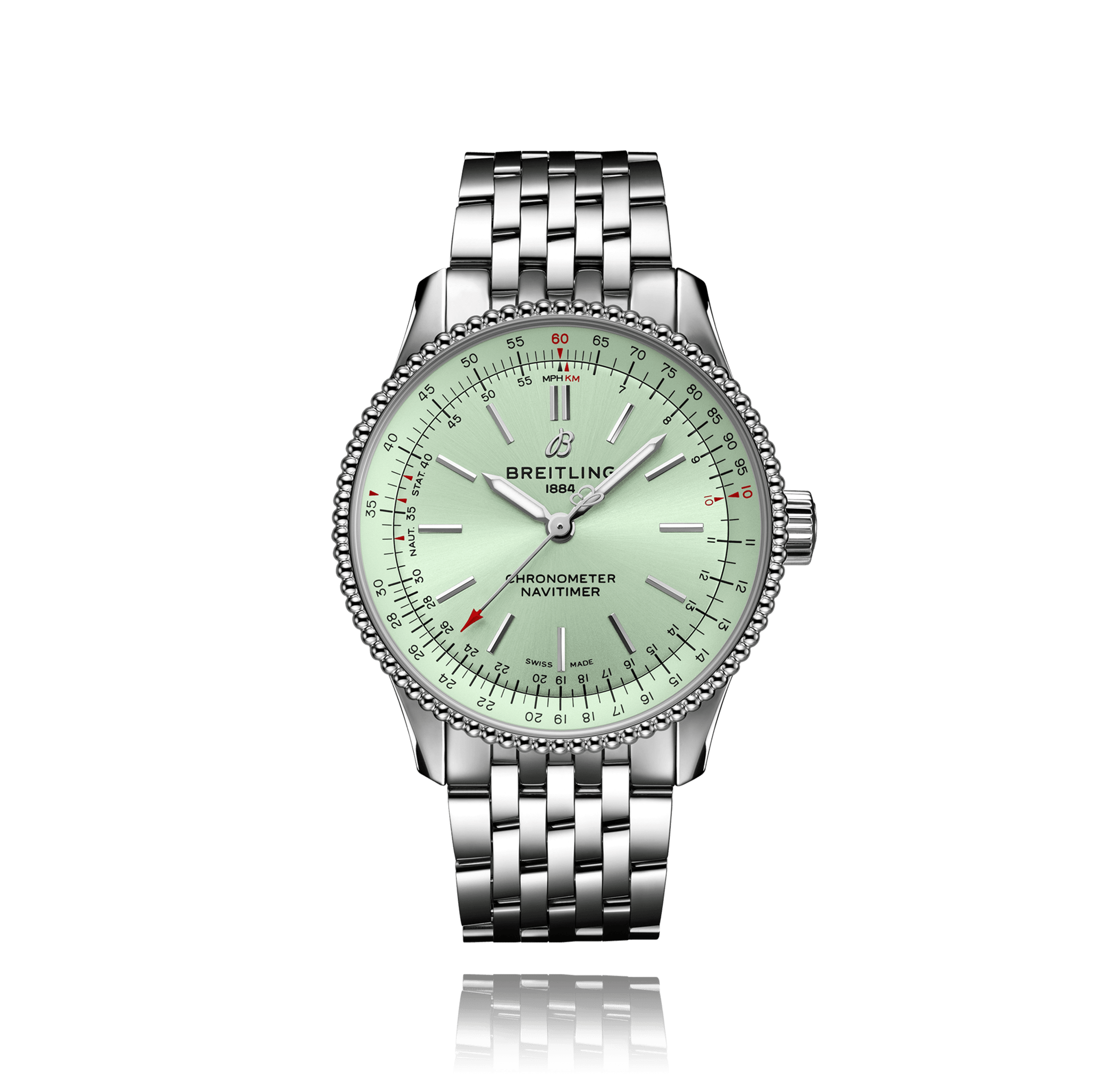 Montre-bracelet, BREITLING Navitimer Automatic, 35 mm, acier, Navitimer bracelet acier, cadran: mintgrün avec index, automatique, Calibre Breitling 17, seconde central, glace saphir, 3 atm, Ref.:A17395361L1A1