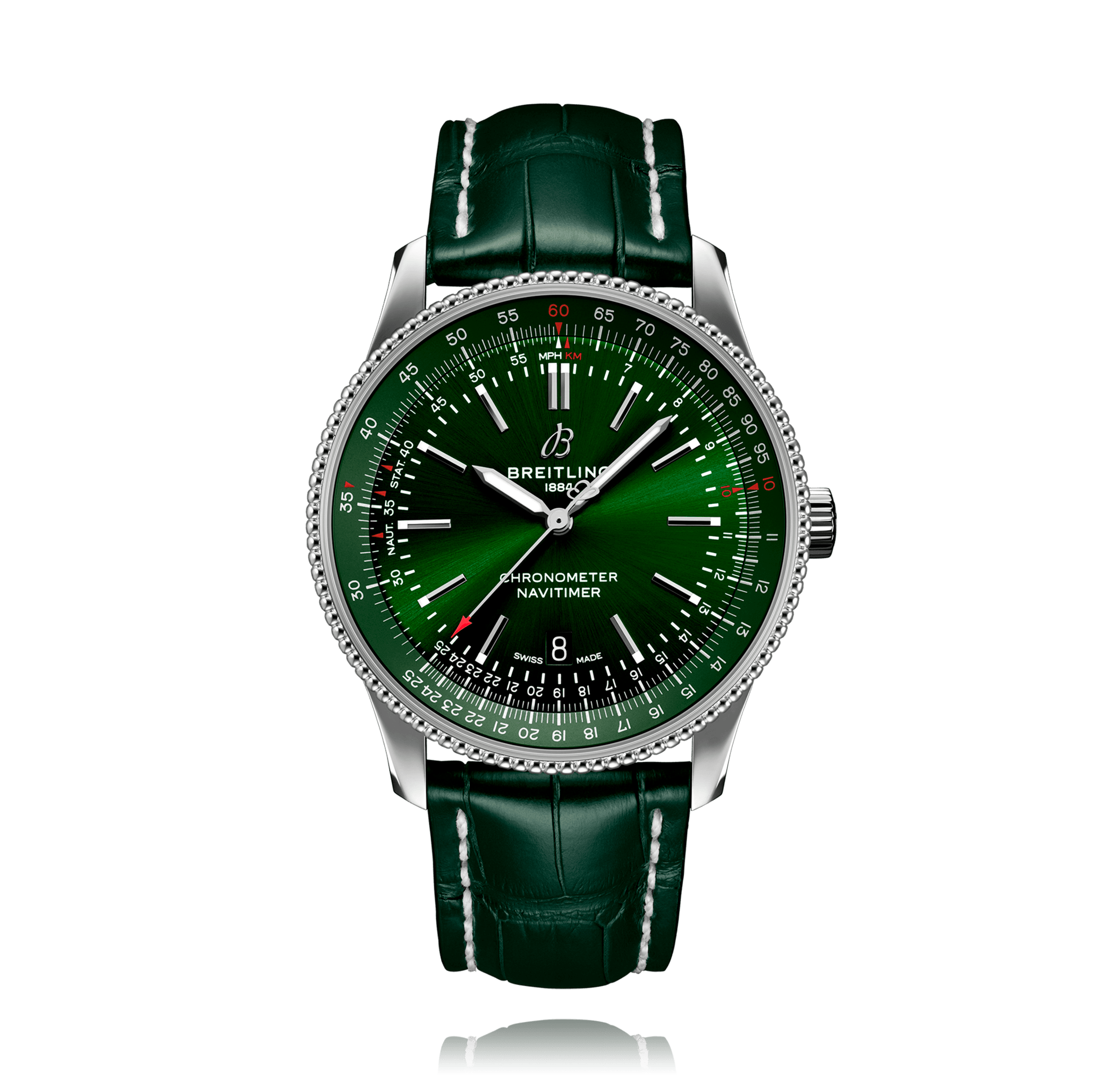 Montre-bracelet, BREITLING Navitimer Automatic 41, 41 mm, acier, bracelet cuir d'alligator, avec boucle ardillon, cadran: vert avec index, automatique, Calibre Breitling 17, seconde central, glace saphir, 3 atm, Ref.:A17326361L1P1