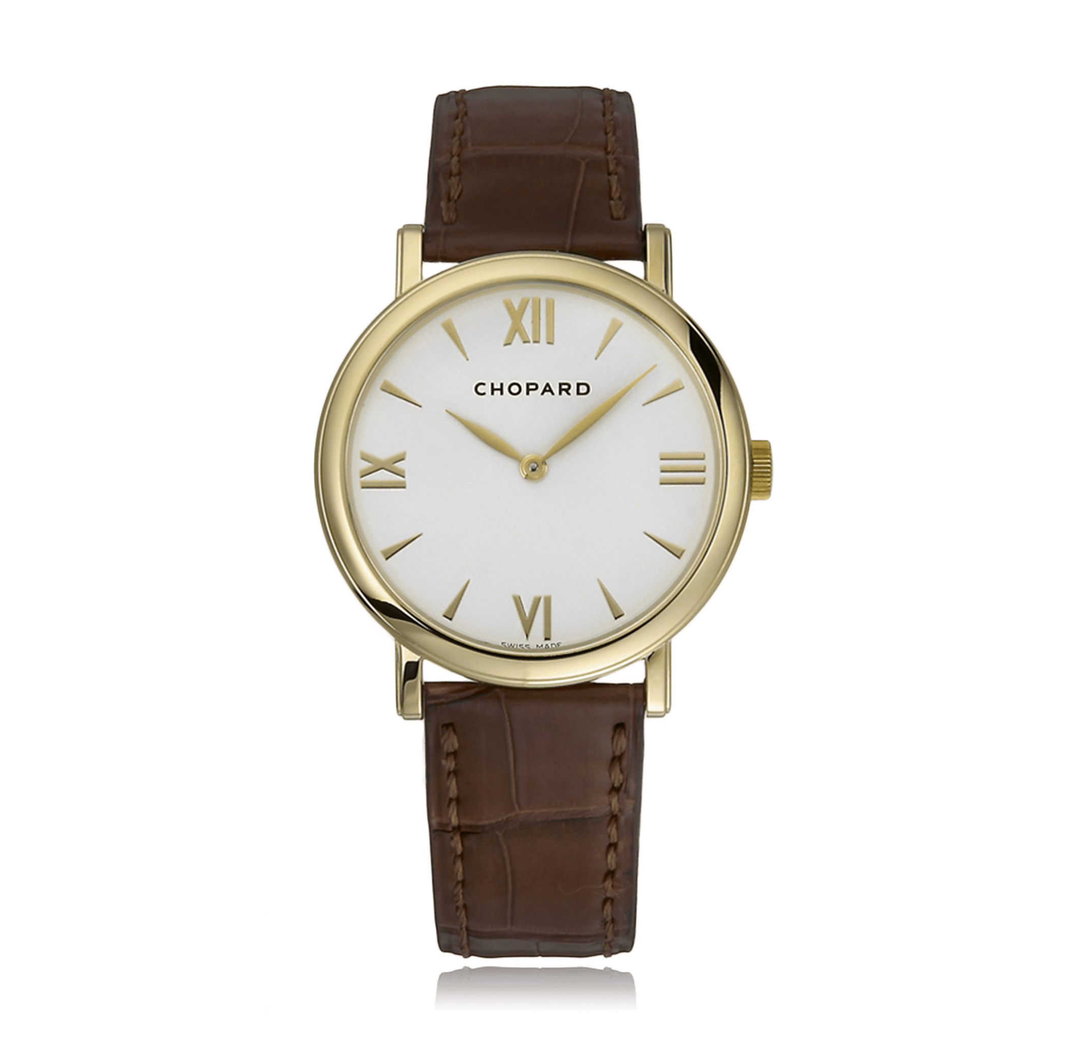 Montre-bracelet CHOPARD Classic 36mm, or jaune 18K, bracelet cuir, cadran: blanc avec romains / indices, remontage manuel glace saphir, Ref.:163154-0201