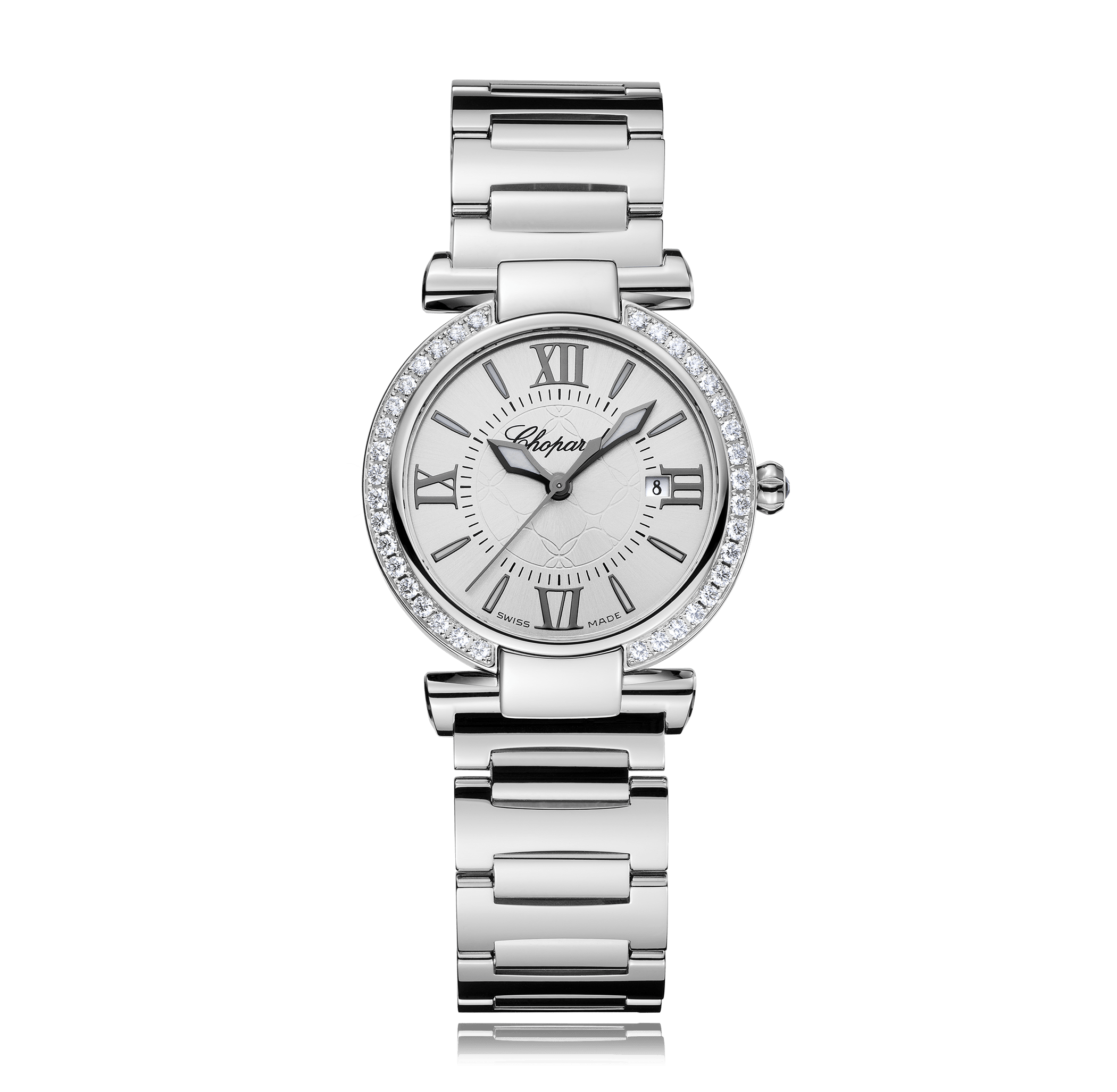 Montre-bracelet CHOPARD Imperiale 28mm, acier bracelet acier, cadran: argenté avec romains / indices, quartz glace saphir, 5 atm, 37 brillants, total: 0.48 ct. Ref.:388541-3004