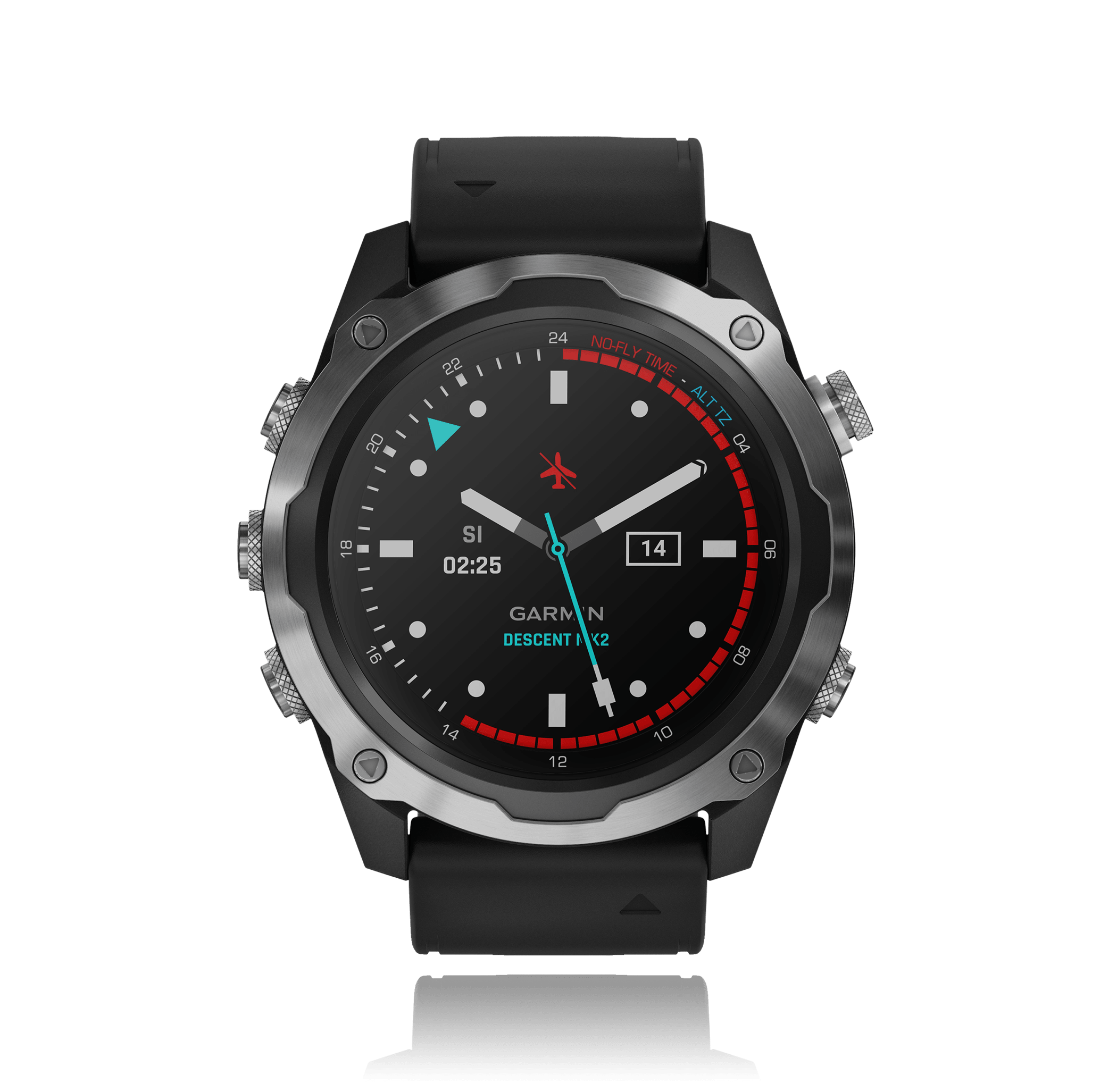 Montre-bracelet, GARMIN DECENT Descent Mk2, 52 mm, matière plastique,. bracelet silicone, avec boucle ardillon, cadran: noir Smart, glace saphir, 10 atm, avec multifonctions, Edelstahl Silber Ref.:010-02132-10
