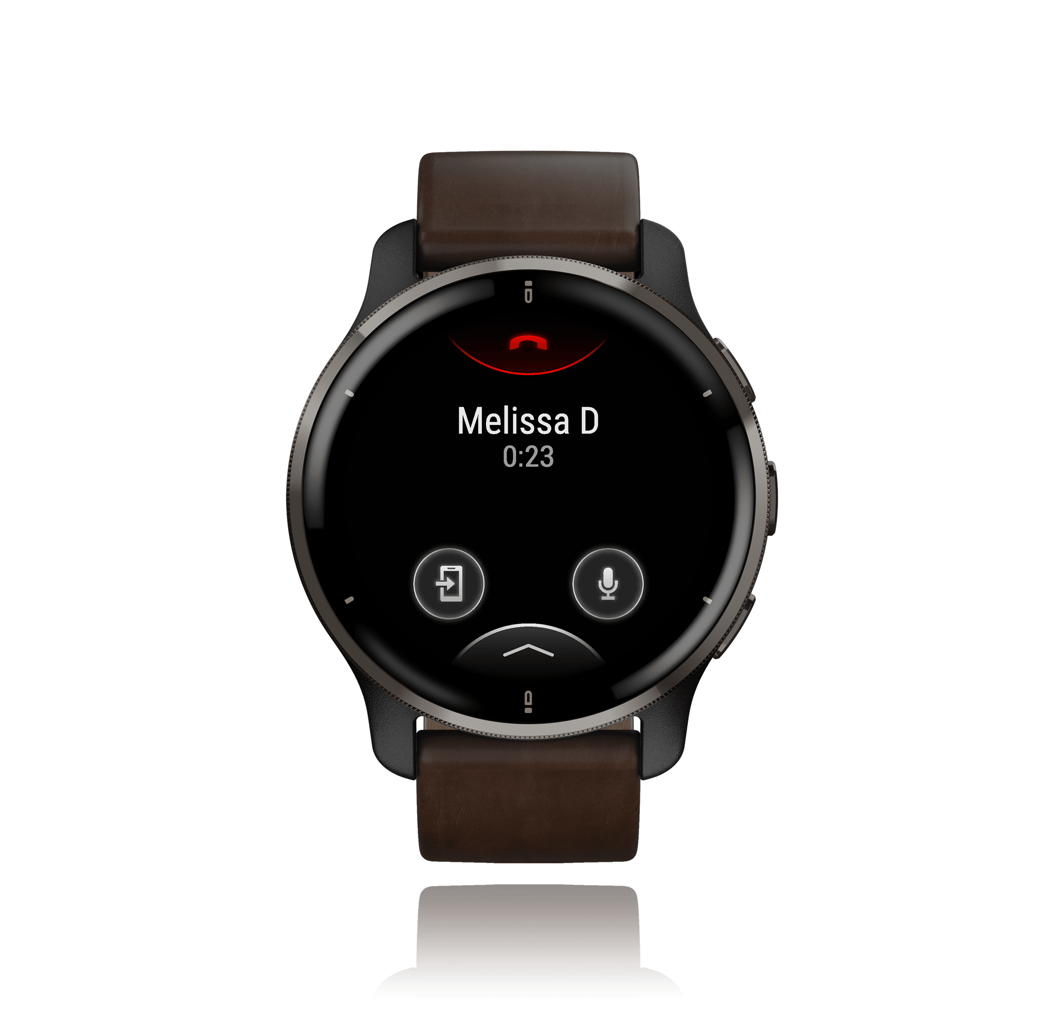 Montre-bracelet, GARMIN VENU Venu 2 Plus, 43 mm, matière plastique,. bracelet cuir, avec boucle ardillon, cadran: noir Smart, glace minéral, 5 atm, avec multifonctions, Schiefergraue Edelstahllünette Ref.:010-02496-15