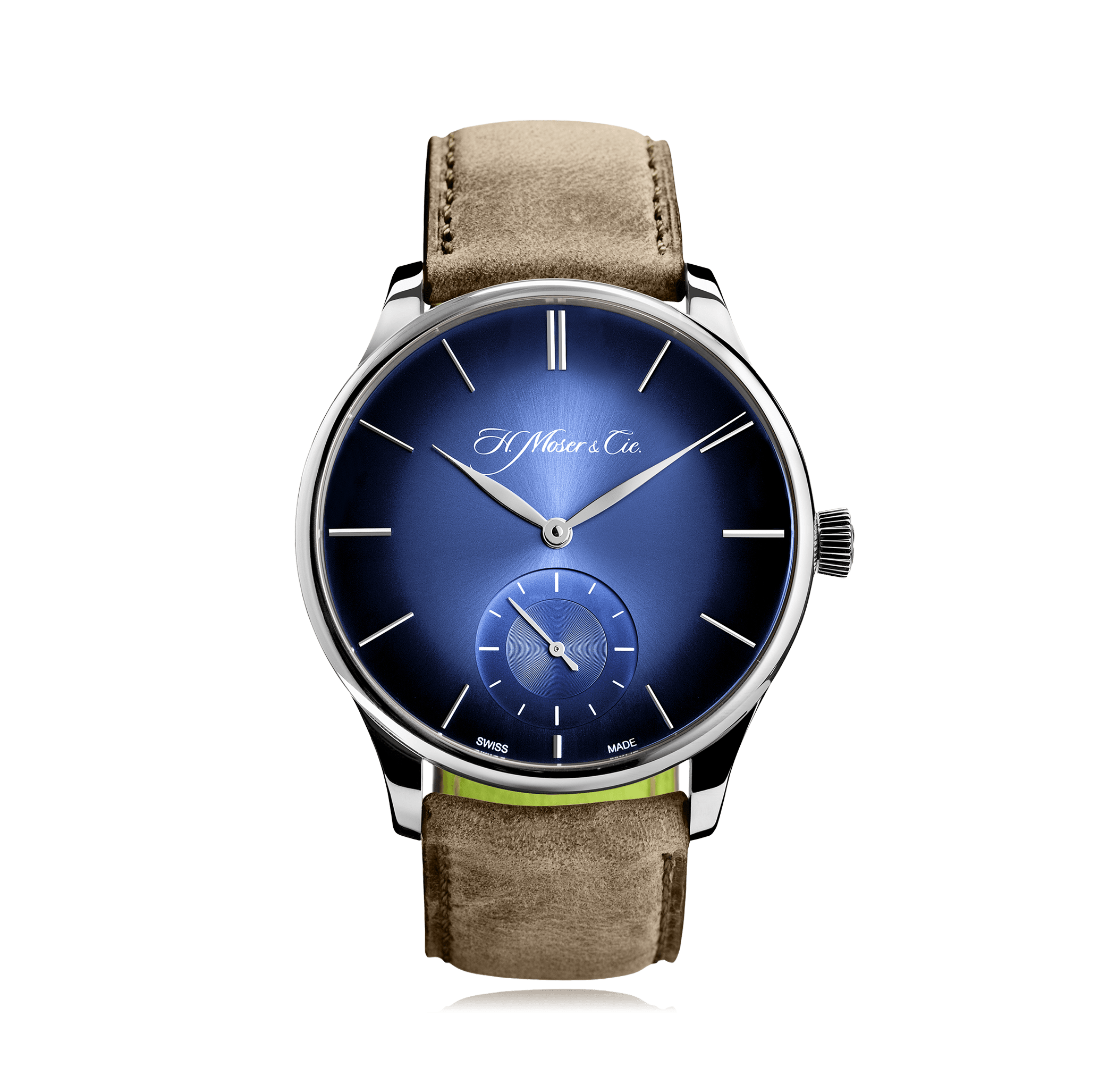 Montre-bracelet, H. MOSER Venturer 43 mm, or gris, 18K,. bracelet cuir, avec boucle ardillon, avec index, mécanique, Calibre HMC 327, petite seconde, Ref.:2327-0203