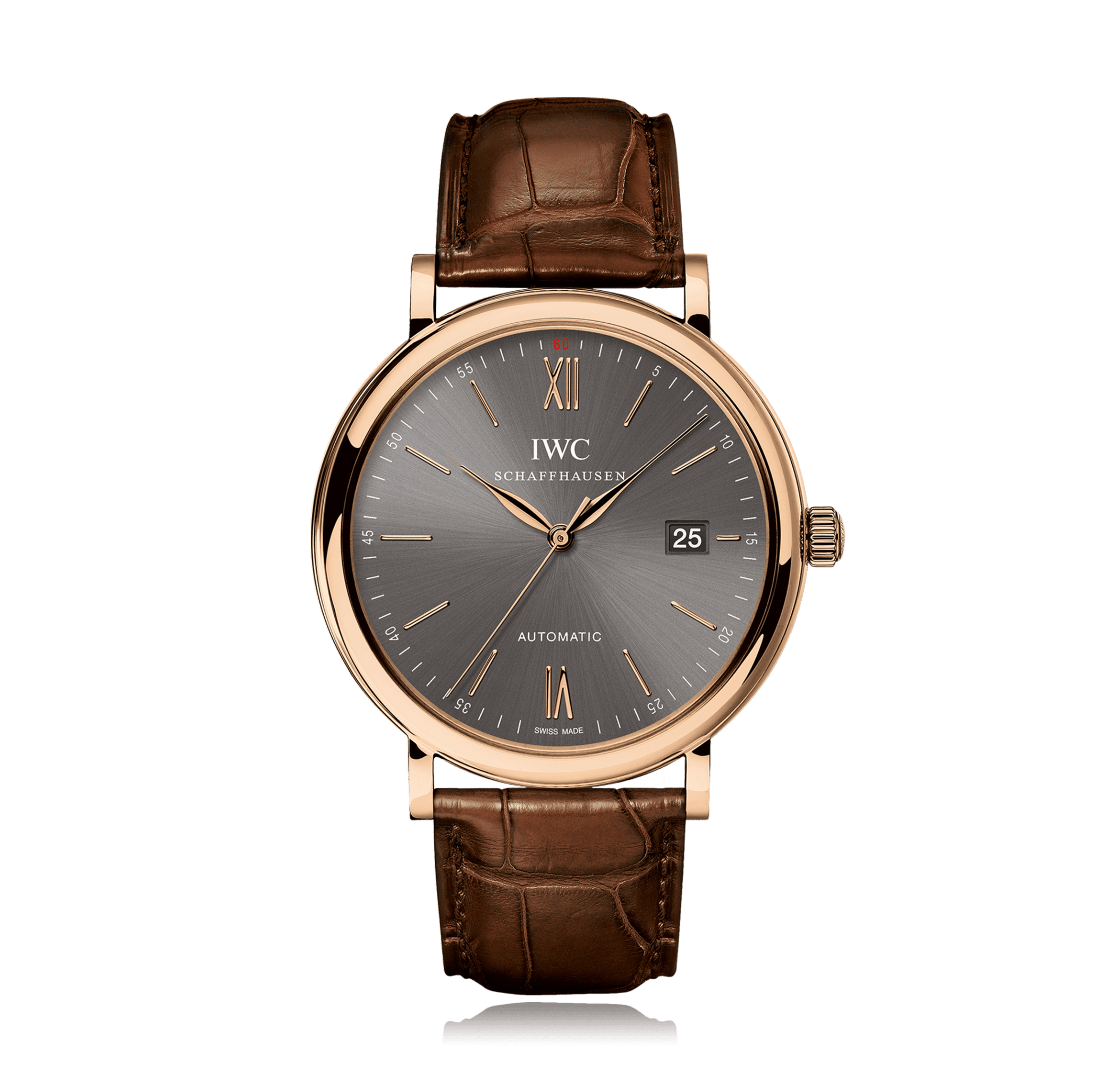 Montre-bracelet IWC Portofino or rose cuir croco, cadran: ardoise avec romains / indices, automatique glace saphir, Ref.:IW356511