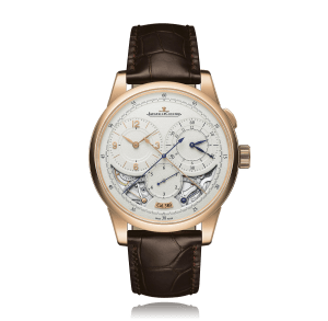 JAEGER-LE COULTRE chronographe, Duomètre 42 mm, or rose, 18K,. bracelet cuir de crocodile, avec boucle ardillon, cadran: argenté avec arabes / indices, remontage manuel, Calibre 380A, petite seconde, glace saphir, 5 atm, avec réserve de marche, Duometre Ref.:Q6012521