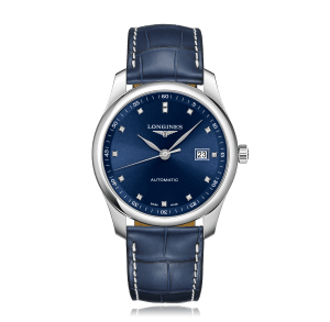 Montre-bracelet LONGINES The Longines Master Collection 40mm, acier cuir alligator, avec boucle déployante, cadran: bleu avec 13 diamants, automatique Calibre 619/888, glace saphir, 3 atm, Ref.:L2.793.4.97.2