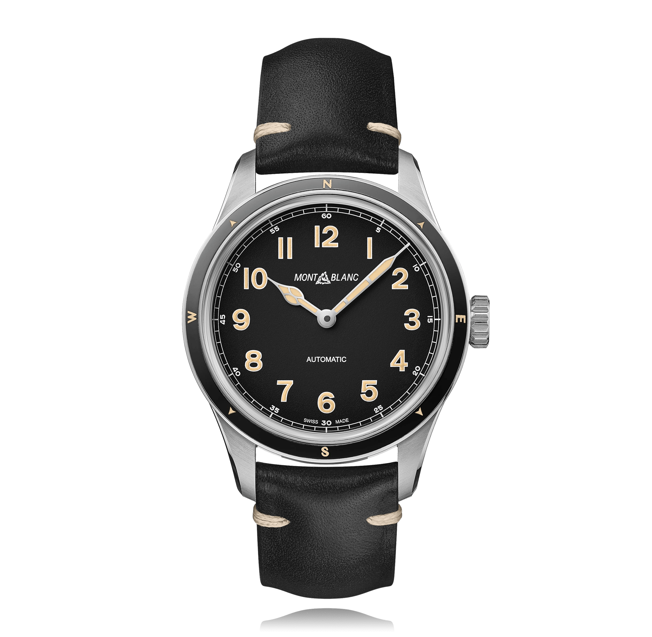 Montre-bracelet, MONTBLANC 40 mm, acier, bracelet cuir, cadran: noir automatique, glace saphir, Ref.:126760