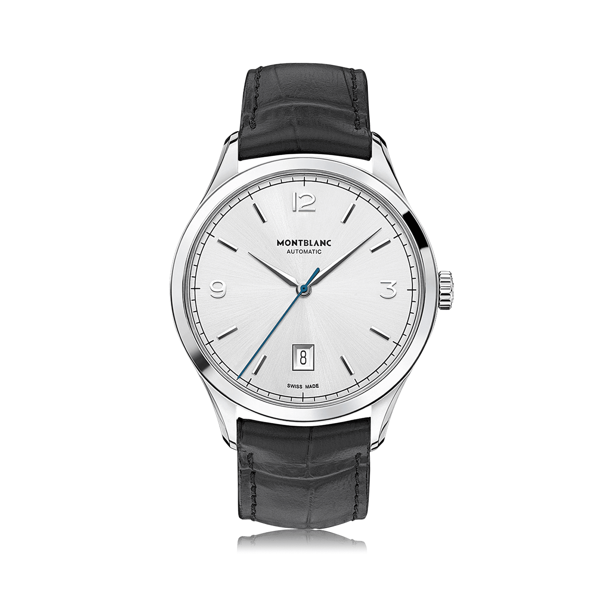 Montre-bracelet Montblanc, Héritage 40mm, acier bracelet cuir, avec boucle ardillon, cadran: argenté avec romains / indices, automatique Calibre MB M24.09, glace saphir, 3 atm, Ref.:112533