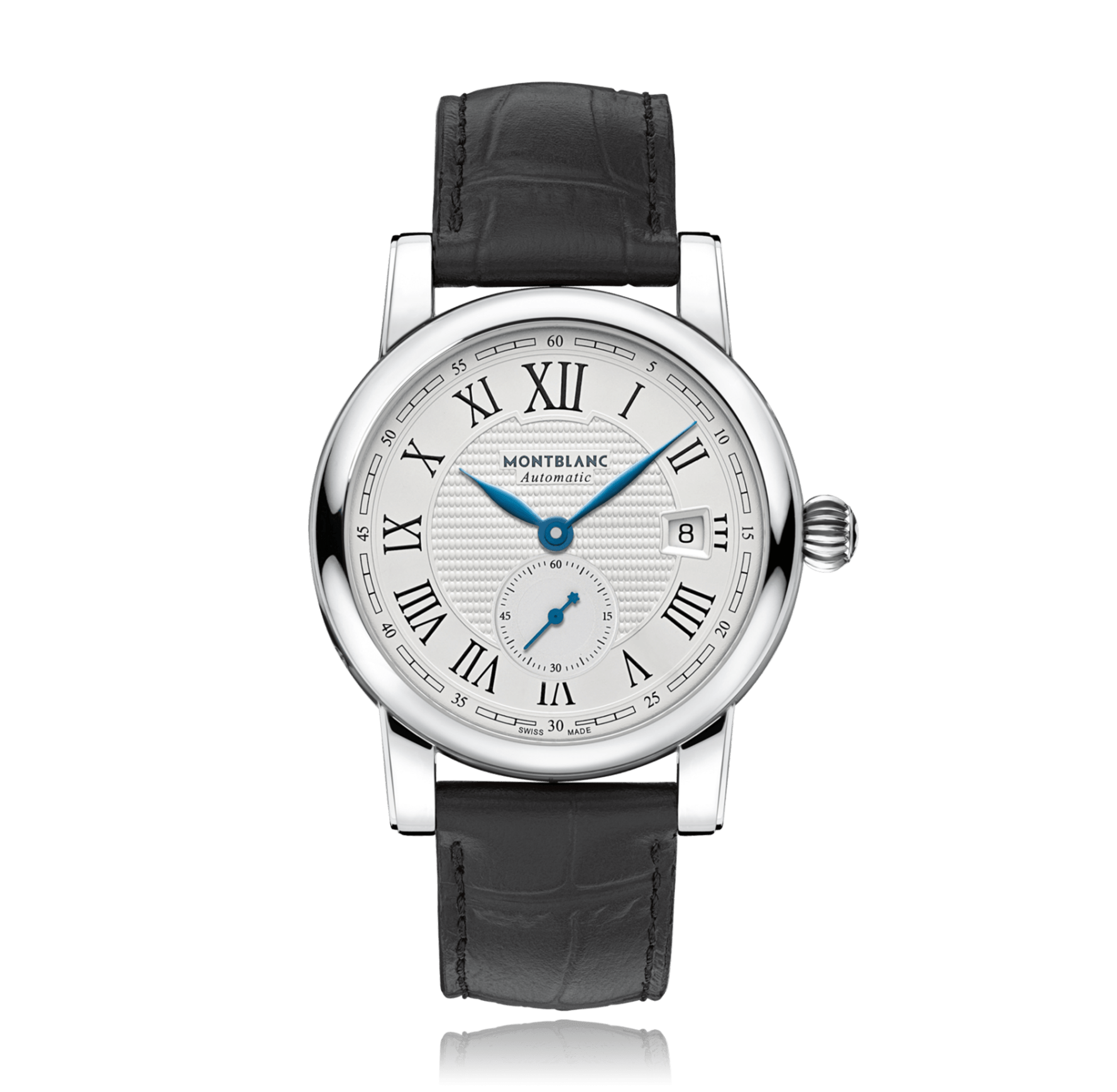 Montre-bracelet MONTBLANC Star 39mm, acier bracelet cuir, avec boucle déployante, cadran: argenté avec romains, automatique Calibre MB 24.16, glace saphir, 3 atm, Ref.:111881