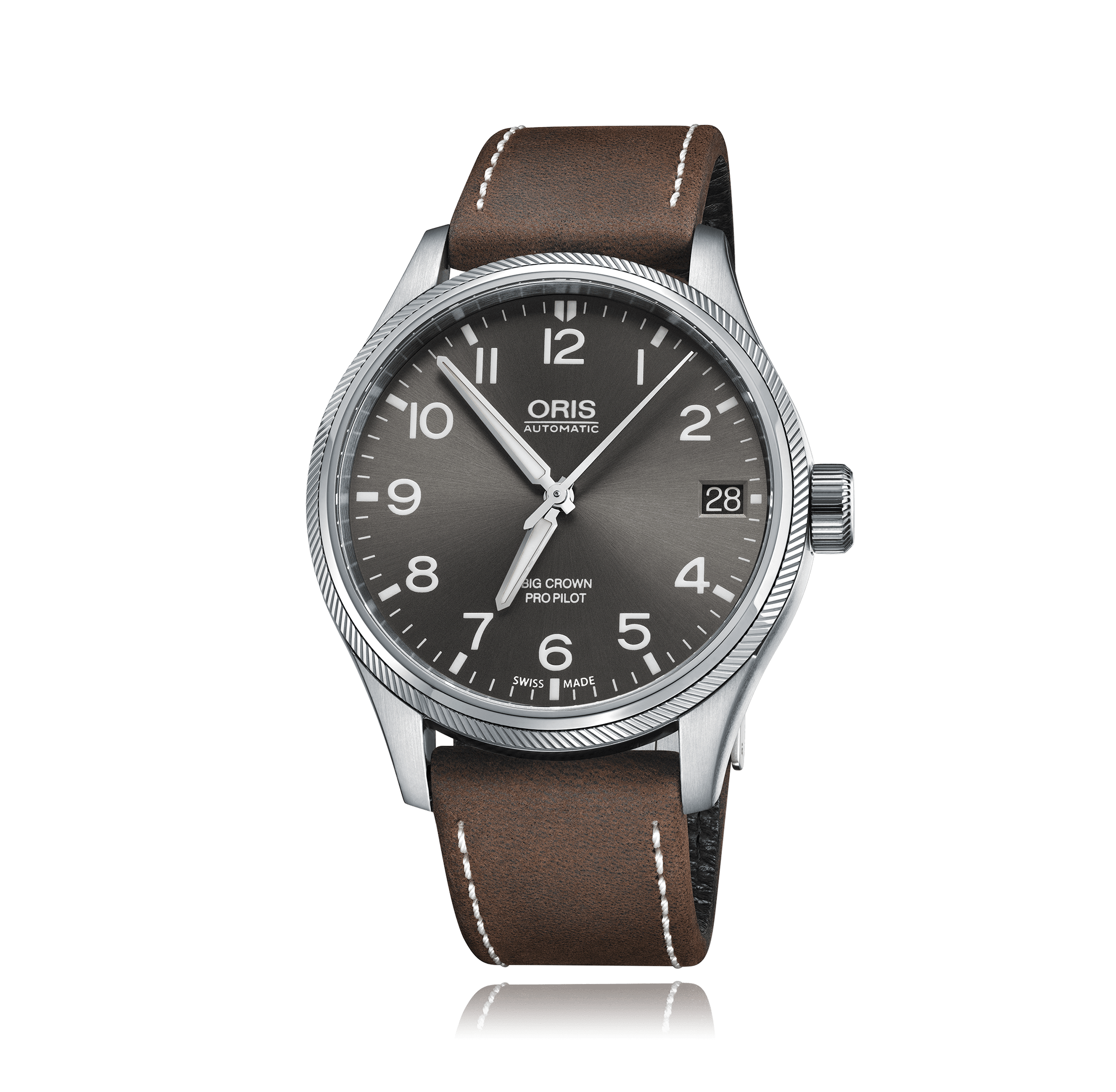 Montre-bracelet ORIS BC ProPilot ProPilot Date, 41mm, acier bracelet cuir, avec boucle déployante, cadran: anthracite avec arabes, automatique Calibre SW 220-1, glace saphir, 10 atm/couronne vissée, Ref.:751.7697.4063-5.20.05FC