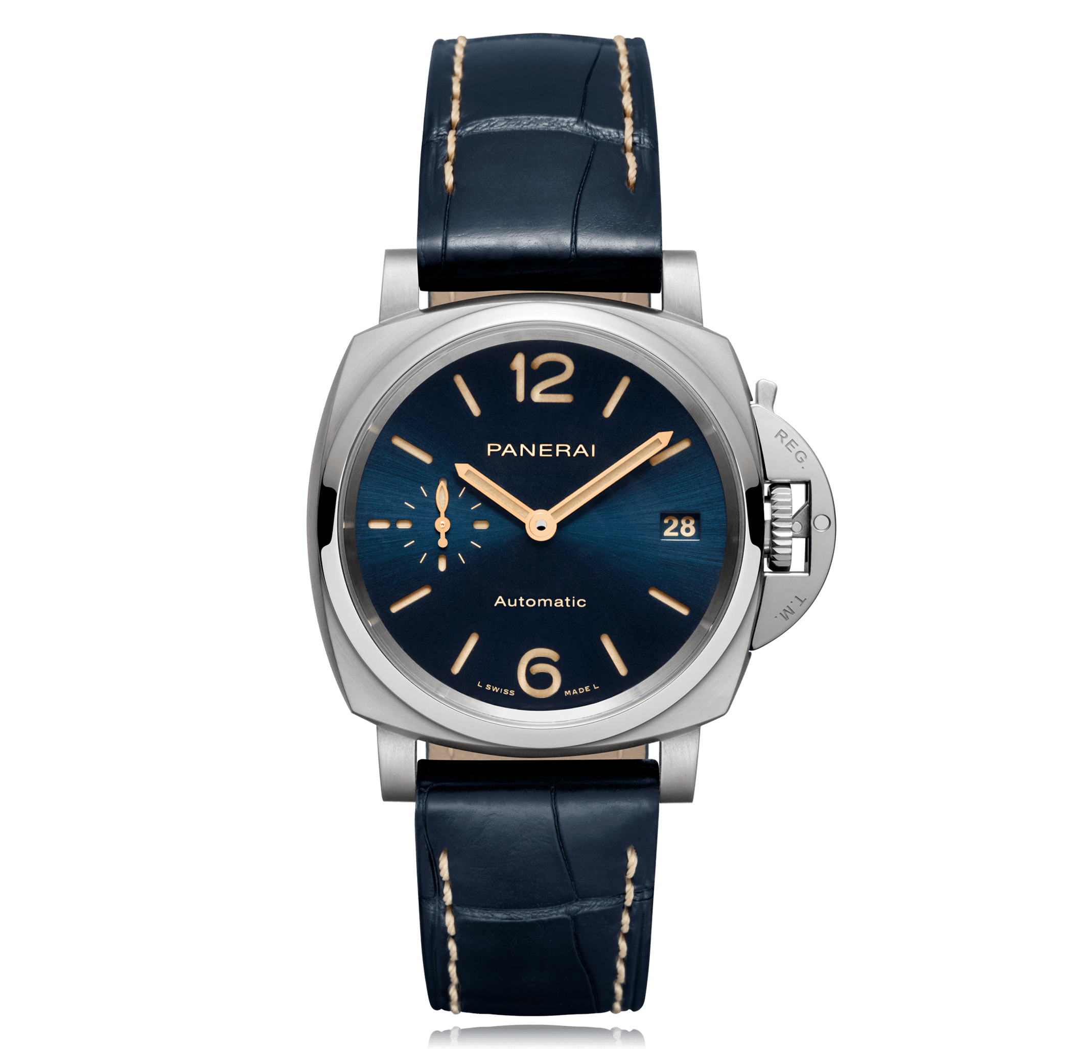 Montre-bracelet PANERAI Luminor Due 38mm, titane cuir d'alligator, cadran: bleu avec arabes / indices, automatique Calibre OPXXXIV, glace saphir, 3 atm, avec réserve de marche, Ref.:PAM00926