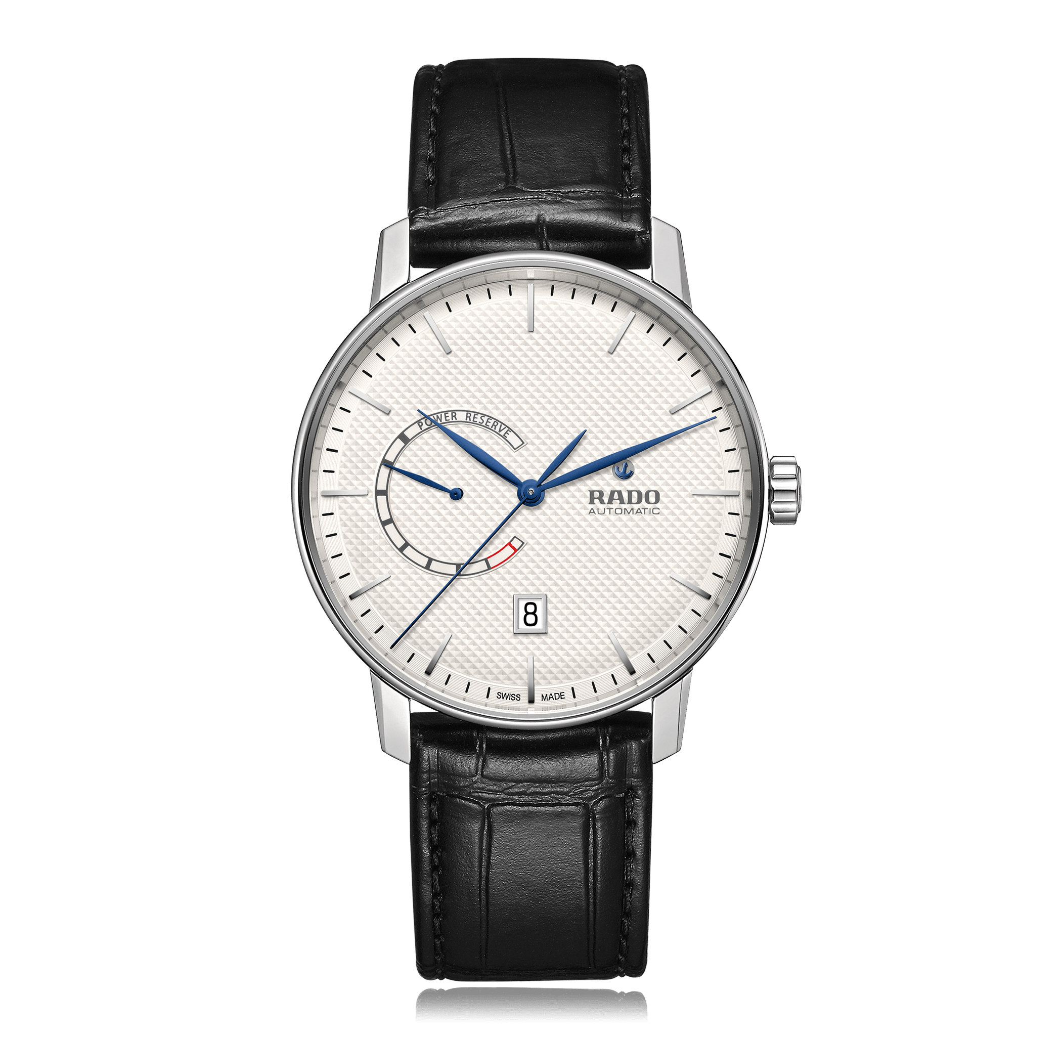 Montre-bracelet RADO Coupole Classic 41mm, acier bracelet cuir, cadran: blanc avec index, automatique Calibre ETA C07.671, glace saphir, 5 atm, Ref.:R22878015