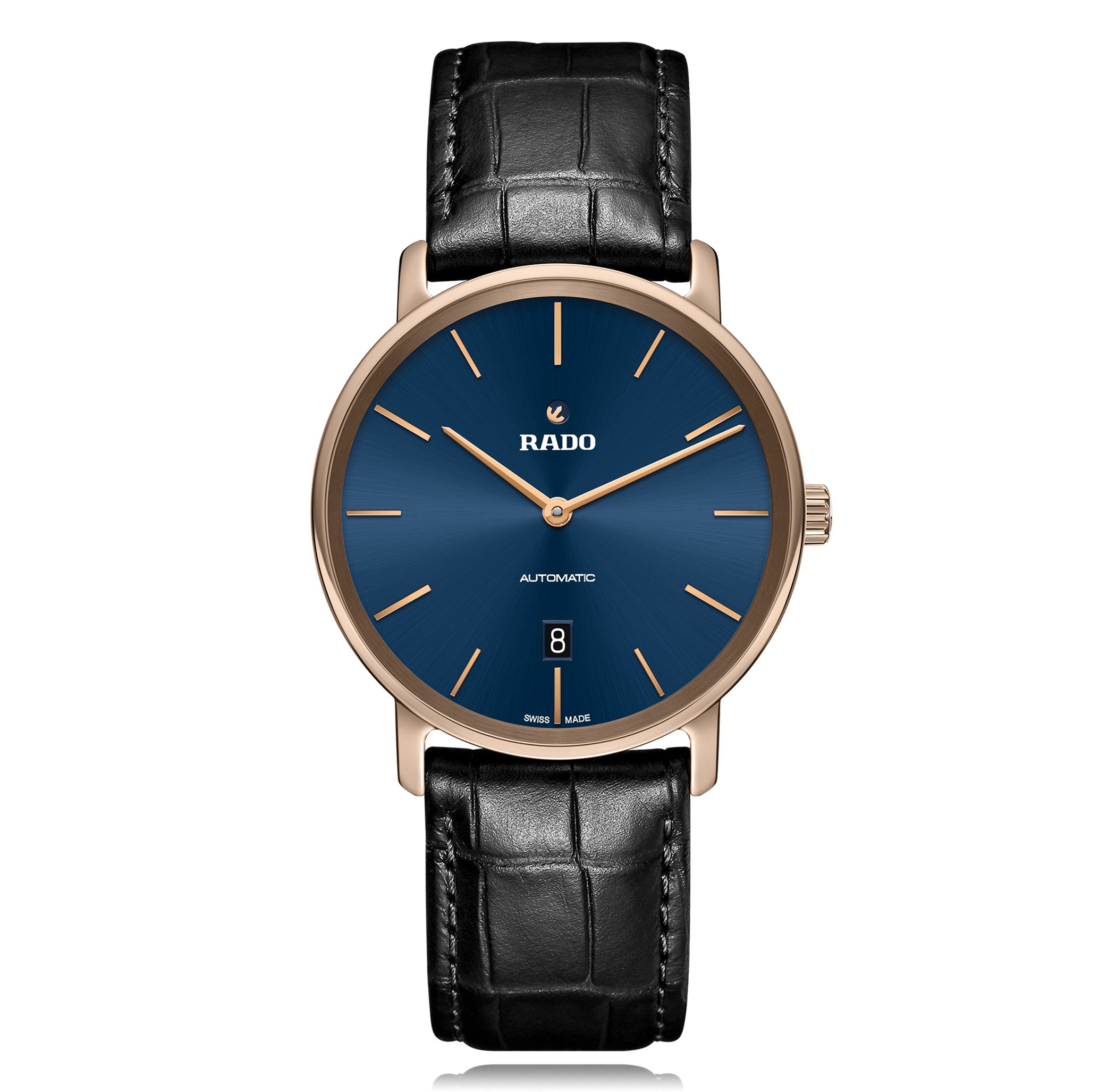Montre-bracelet RADO Diamaster 40.2 mm, céramique bracelet cuir, avec boucle déployante, cadran: bleu avec index, automatique Calibre ETA A31.L01, glace saphir, 10 atm, Ref.:R14068206
