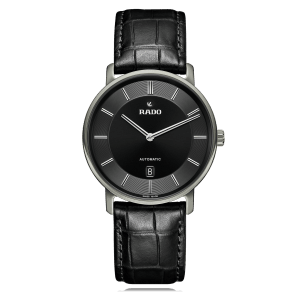 Montre-bracelet, RADO Diamaster 41 mm, Ceramos,. bracelet cuir, avec boucle déployante, cadran: noir avec index, automatique, Calibre R766, glace saphir, 5 atm, Ref.:R14067166