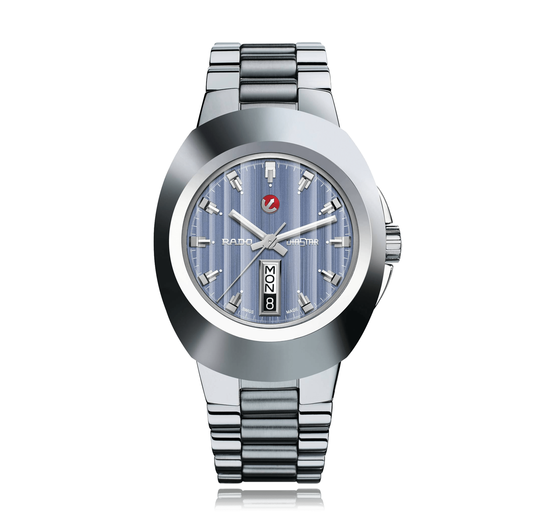 Montre-bracelet RADO New Original 38.5 mm, medium, métal dur bracelet acier, avec boucle déployante, cadran: bleu avec index, automatique Calibre ETA C07.621, glace saphir, 10 atm, Ref.:R12995203