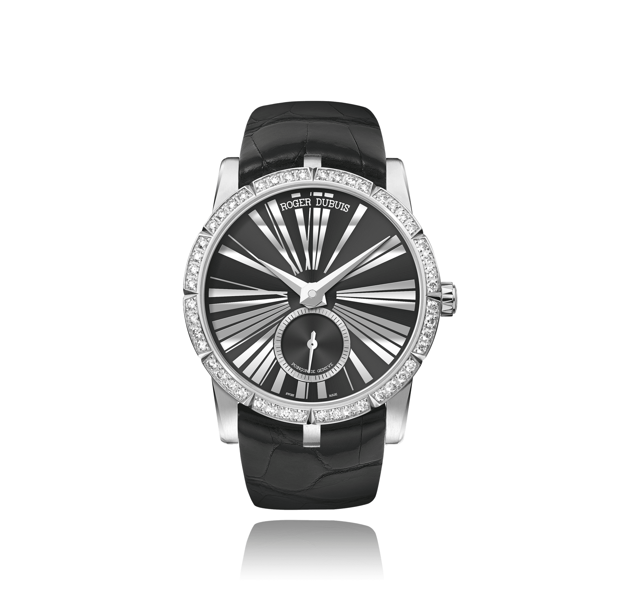 Montre-bracelet Roger Dubuis Excalibur 36, 36mm, acier bracelet satin, avec boucle déployante, cadran: noir avec romains, automatique glace saphir, 48 diamants, total: 0,99 ct. Ref.:RDDBEX0278