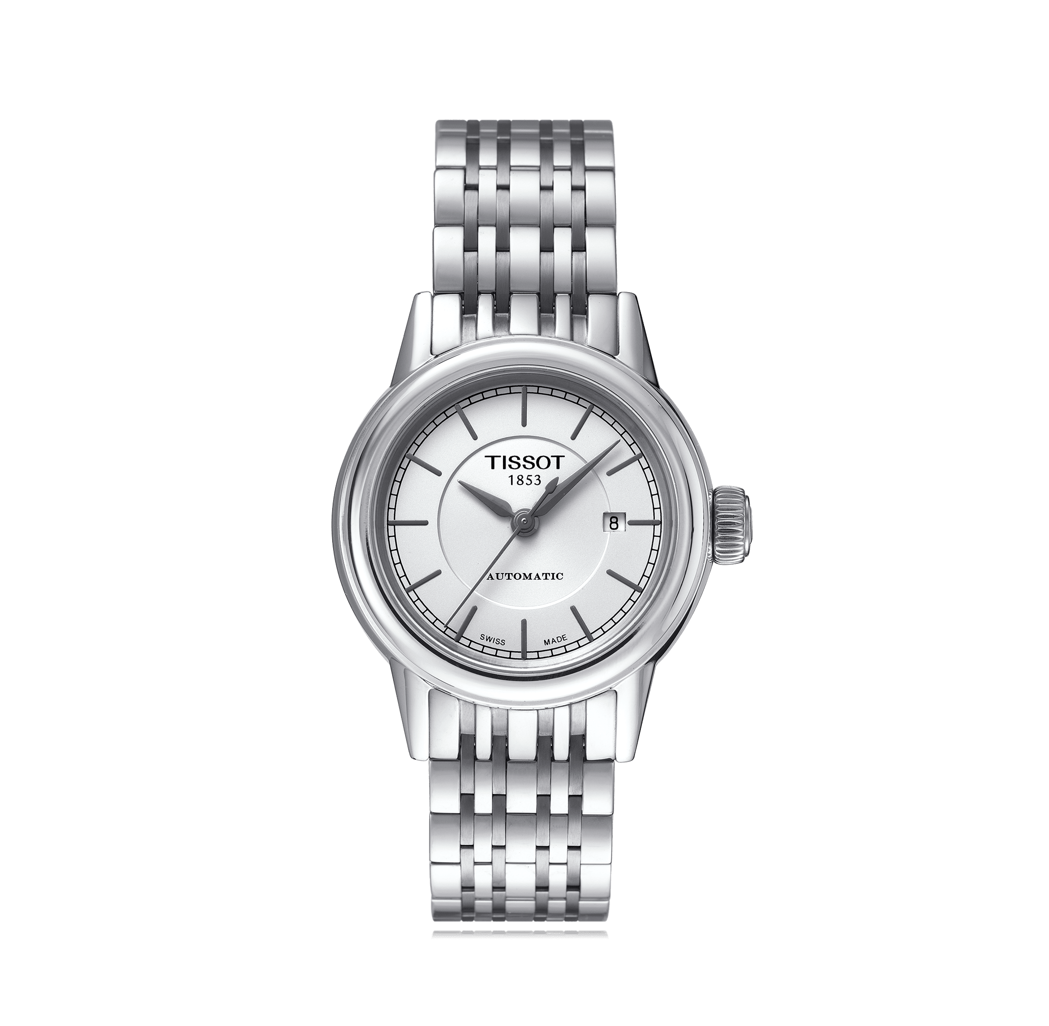 Montre-bracelet Tissot, T-Classic Carson, 28.5mm, acier bracelet acier, avec boucle déployante, cadran: blanc avec index, automatique Calibre ETA 2671, glace saphir, 3 atm, Ref.:T085.207.11.011.00