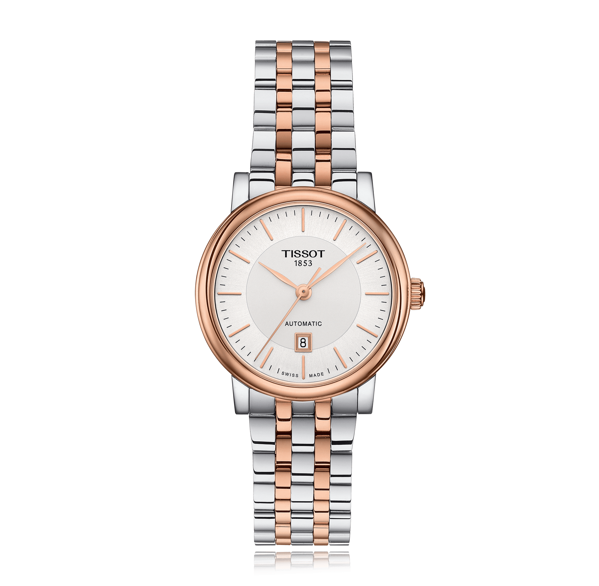 Wristwatch TISSOT T-Classic Carson, 30mm, steel/PVD, steel/gold-plated brac., with folding clasp, silver dial with index, automatic Cal. ETA 2671, sapphire-crystal, 5 atm, Ref.:T122.207.22.031.01