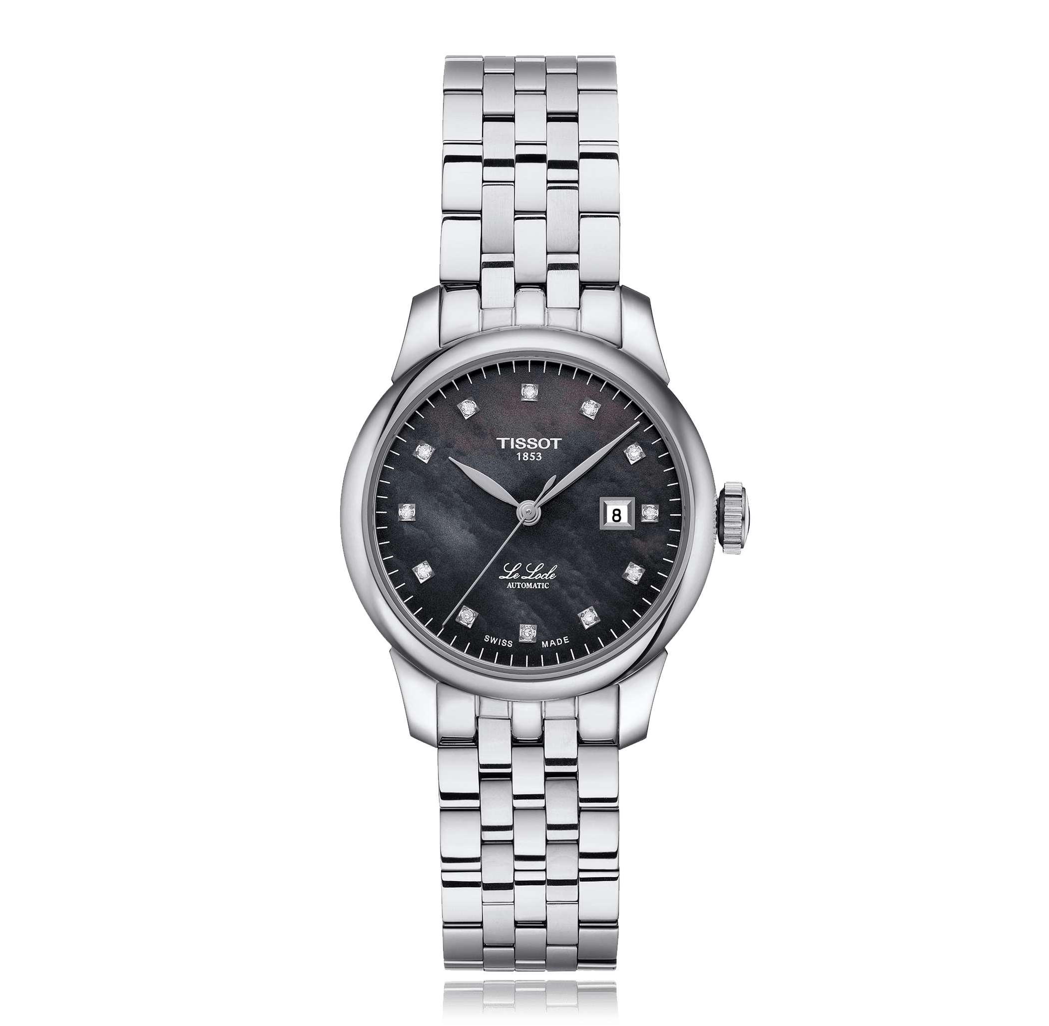 Montre-bracelet TISSOT T-Classic Le Locle, 29mm, acier bracelet acier, avec boucle déployante, cadran: nacre noire avec 12 diamants, automatique Calibre 2671, glace saphir, 3 atm, Ref.:T006.207.11.126.00