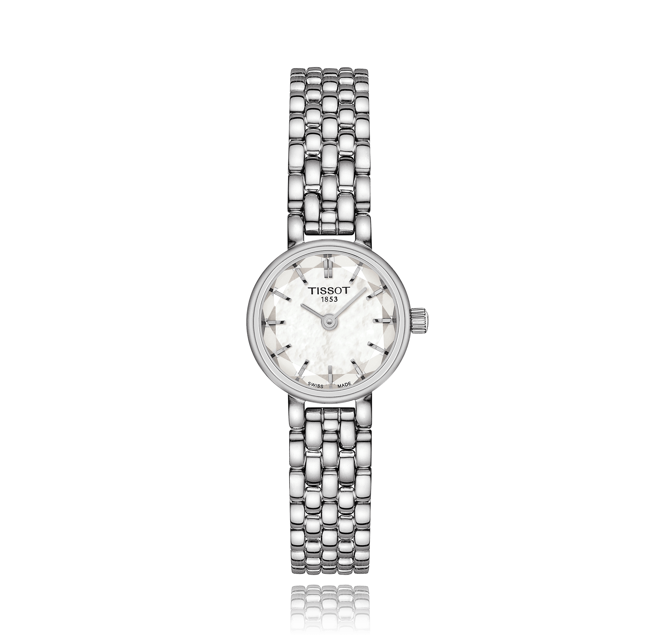 Montre-bracelet, TISSOT T-Lady Lovely, 19.5 mm, acier,. bracelet acier, avec boucle déployante, cadran: nacre avec index, quartz, Calibre ETA 901.001, glace saphir, 3 atm, Ref.:T140.009.11.111.00