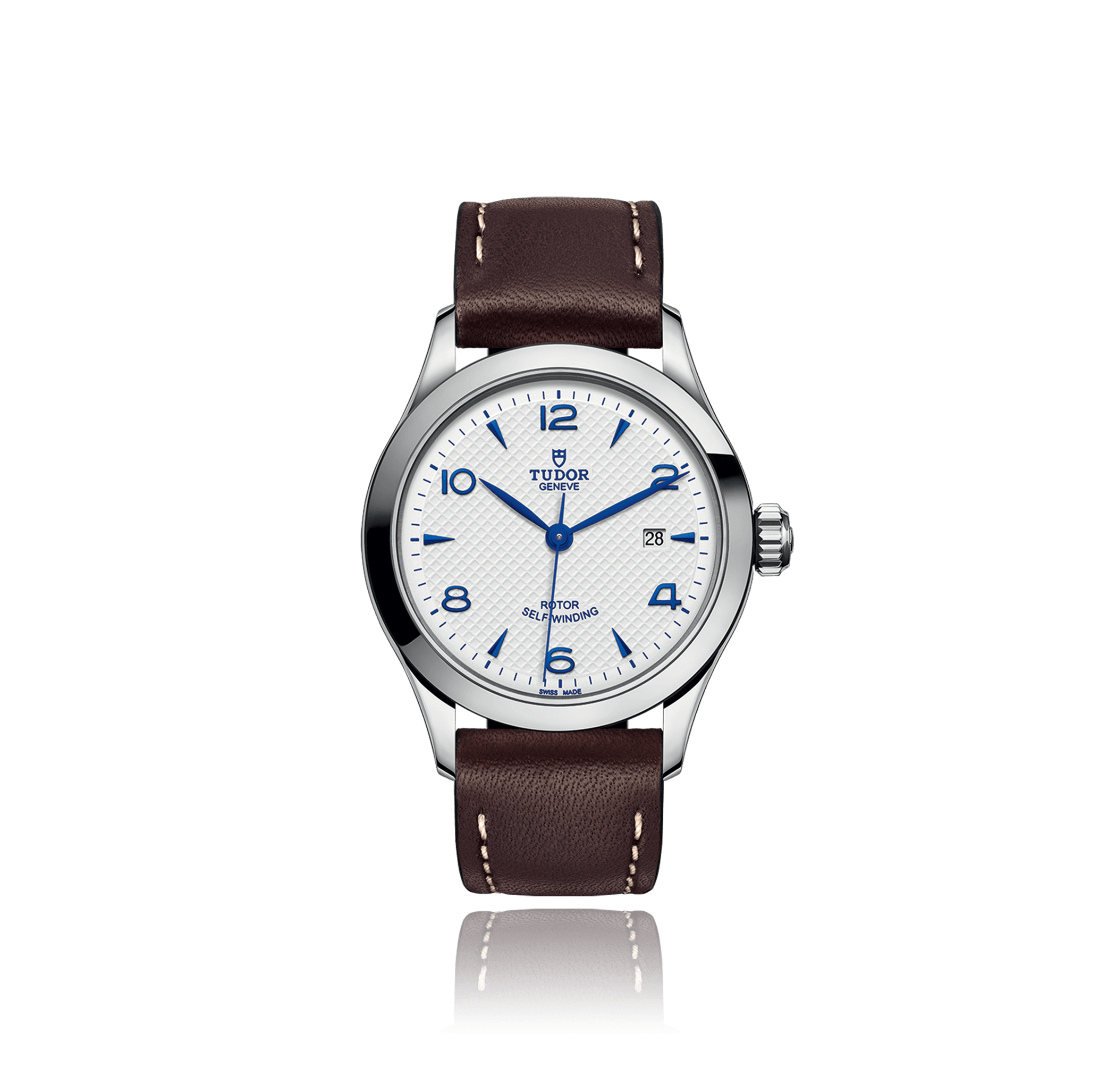 Montre-bracelet, TUDOR 1926 28 mm, acier, bracelet cuir, cadran: blanc avec arabes / indices, automatique, Calibre T201, glace saphir, 10 atm, Ref.:91350-Lederband
