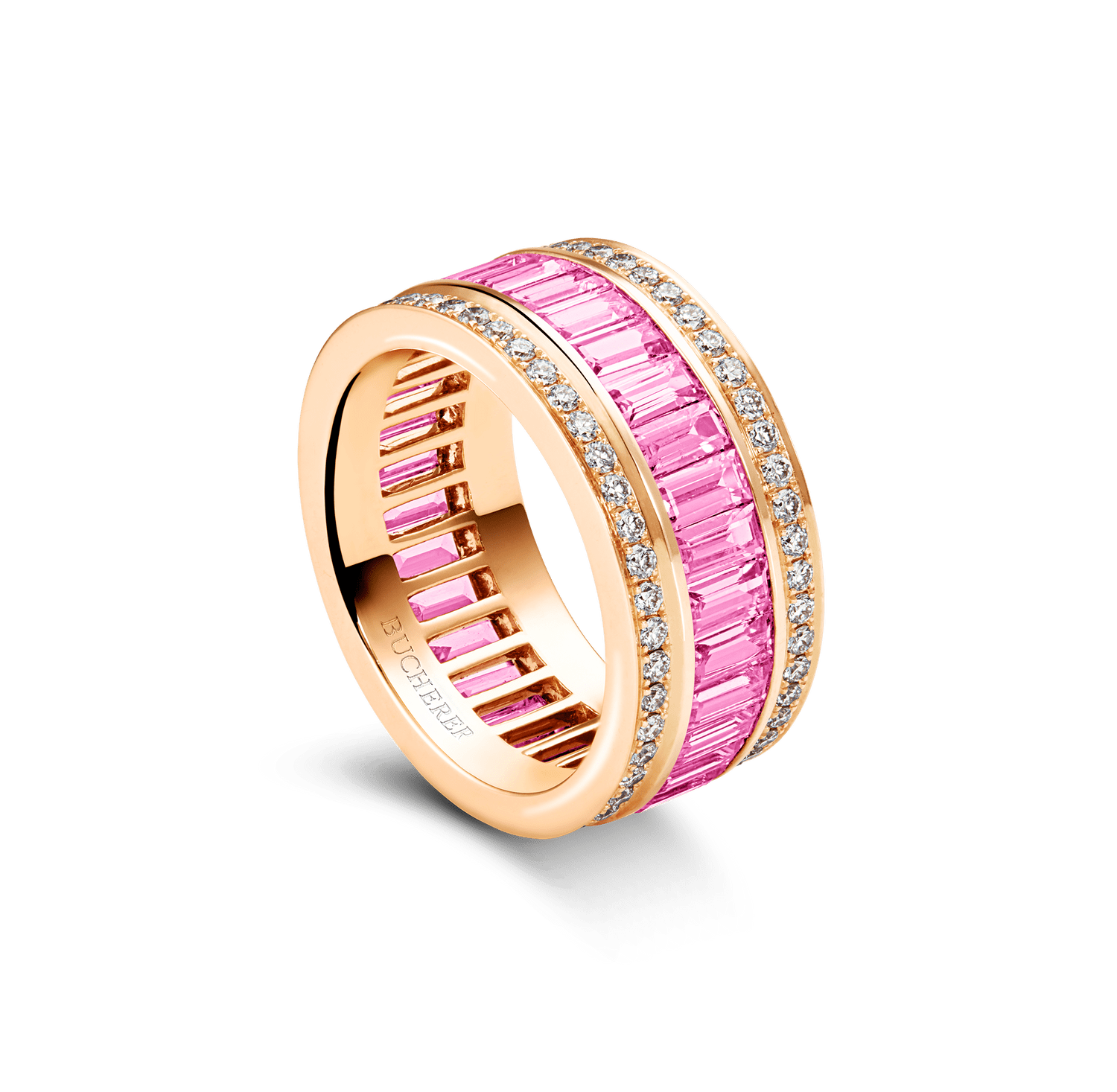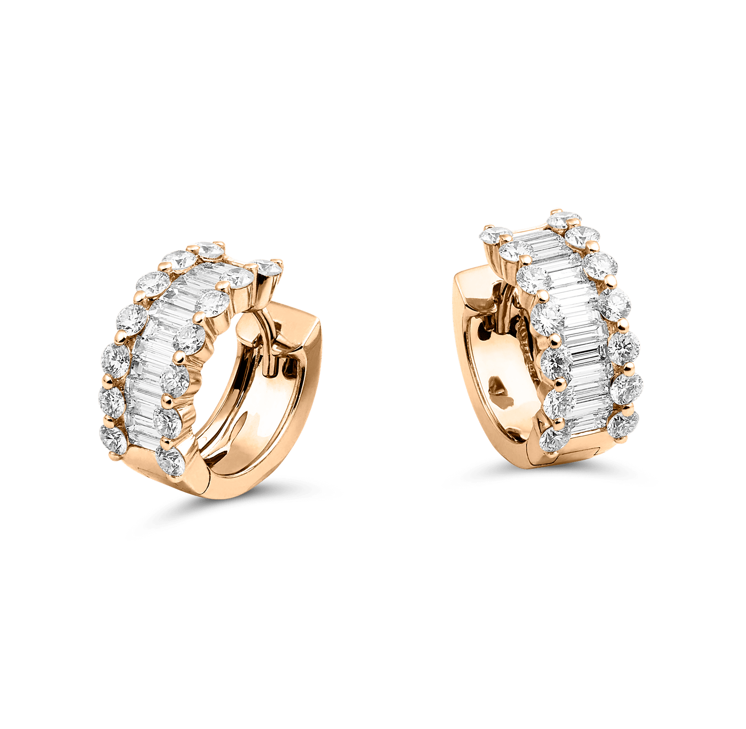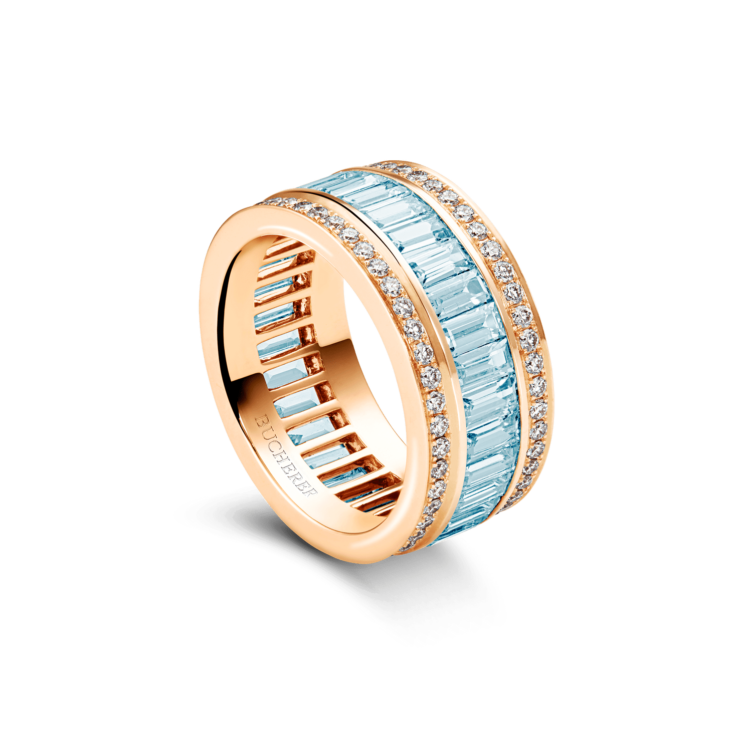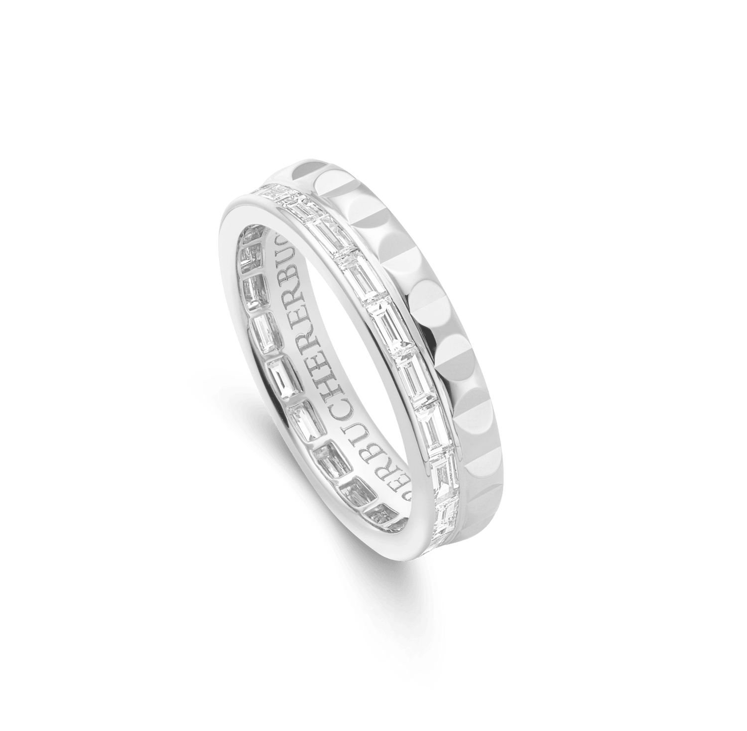 Da Baguette-Schliff Diamanten oft als Paar oder gleich als Serie verarbeitet werden ist es wichtig, dass sie einheitliche Farben, Reinheit und Proportionen aufweisen. Abweichungen, vor allem in der Schliffgüte und Farbe sind oft schon von blossem Auge sichtbar und stören die Eleganz und die perfekte Optik. Bei diesen Ringen von Bucherer Fine Jewellery entstehen elegante Schmuckhighlights durch die kunstvolle Kombination von Baguette- und Brillant-Schliff Diamanten.