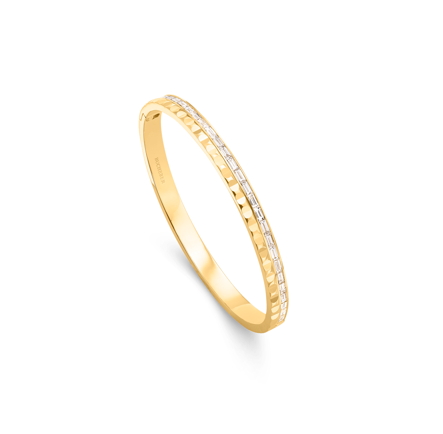 Der Name “Baguette” ist übrigens nicht von Frankreichs berühmtem Stangenweissbrot abgeleitet, sondern von “la baguette”, was aus dem Französischen übersetzt Stab oder Stäbchen bedeutet und den Baguette-Schliff Diamant recht eindeutig charakterisiert: Ein Rechteck aus exakt ausgeschliffenen 90°-Ecken und mehreren treppenartigen, parallel gearbeiteten Facetten, die sich an die zentrale, rechteckige Tafelfacette anschliessen. Der als klassischer Treppen-Schliff in den 1920er-Jahren entworfene Cut erinnert mit seiner klaren, puren Formensprache an die Stilrichtung des Art déco, die sich mit geometrischen und ebenmässigen Elementen schmückte.