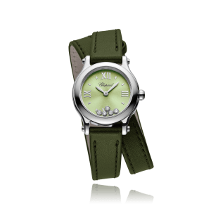 CHOPARD Armbanduhr, Happy Sport 25 mm, Mini, Stahl, Kalbsleder-Band, grün, mit Dorn-Schliesse Zifferblatt: mintgrün röm./Index, Quarz, Saphir-Glas, 3 Atm, 5 Diamanten Ref.:278620-3005