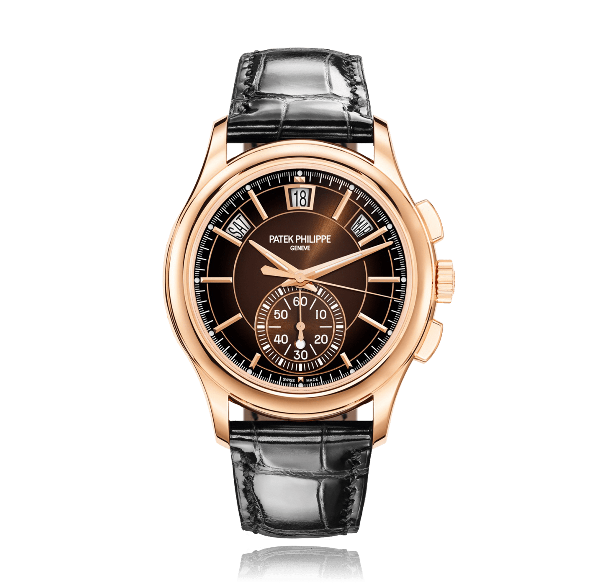 PATEK PHILIPPE Chronograf, Complication Annual Calendar, 42mm, 18K Rotgold, schwarz Alligatorleder, mit Dorn-Schliesse Zifferblatt: braun Index, Tag-/Nachtanzeige, Automat Kaliber CH 28-520 QA 24H, Saphir-Glas 3 Atm, Jahreskalender, Ref.:5905R-001