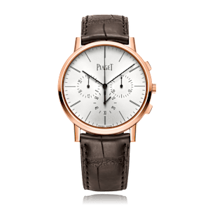 Piaget Altiplano with a 41 mm rose gold case and a sapphire glass, water resistant; inside is the automatic calibre 883p, chronograph as additional function a silver index face without date indication, the bracelet is a alligator leather; accessory: sales box (original), sales guarantee (original).